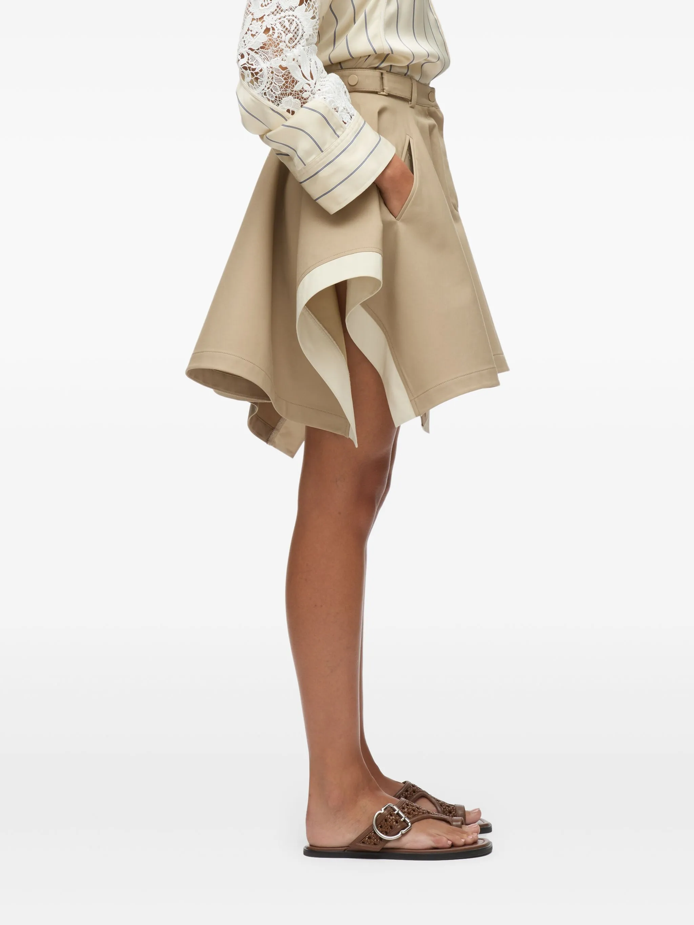 An elevated take on everyday ease. This structured A-line skirt features a handkerchief hem with fluid movement, blending sophistication and playful charm. Tailored in technical coated cotton, it's detailed with pleats and a contrast curved hem. Style it with a silk blouse and sandals for a refined yet relaxed look that transitions seamlessly throughout the day.
