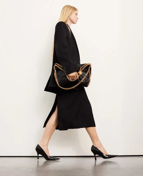 An adaptable iteration of our iconic Falabella tote, this fold-over tote bag is infinitely wearable. The signature diamond-cut recycled brass and aluminium chain instantly characterises this dynamic bag. Fully lined with a recycled fabric made from plastic bottles, wear the Falabella fold-over tote in one hand for a classic look or over the shoulder to showcase its duality.