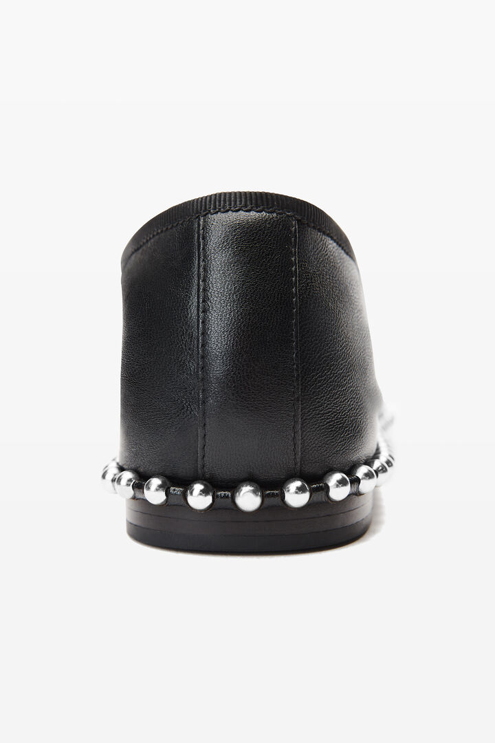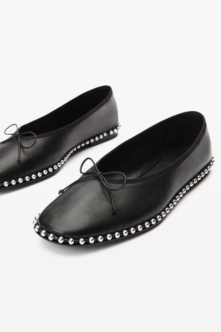 A smooth lamb leather upper contrasted by ball chain trim completes the lina ballerina flat in black.