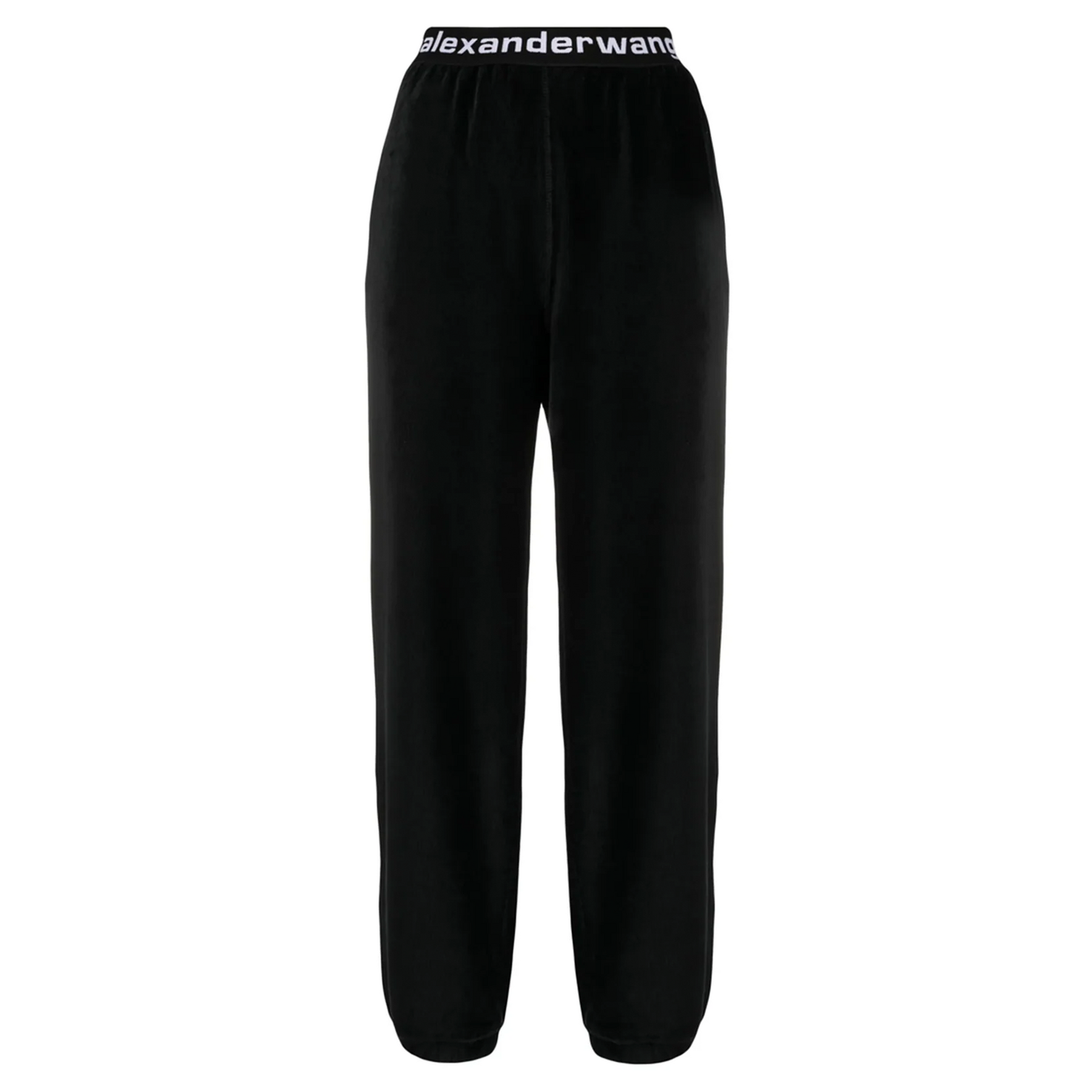 Alexander Wang's stylish jogging pants are cut from soft stretch corduroy and finished with a logo printed elastic waistband. Slant pockets at hip. Pull-on style.