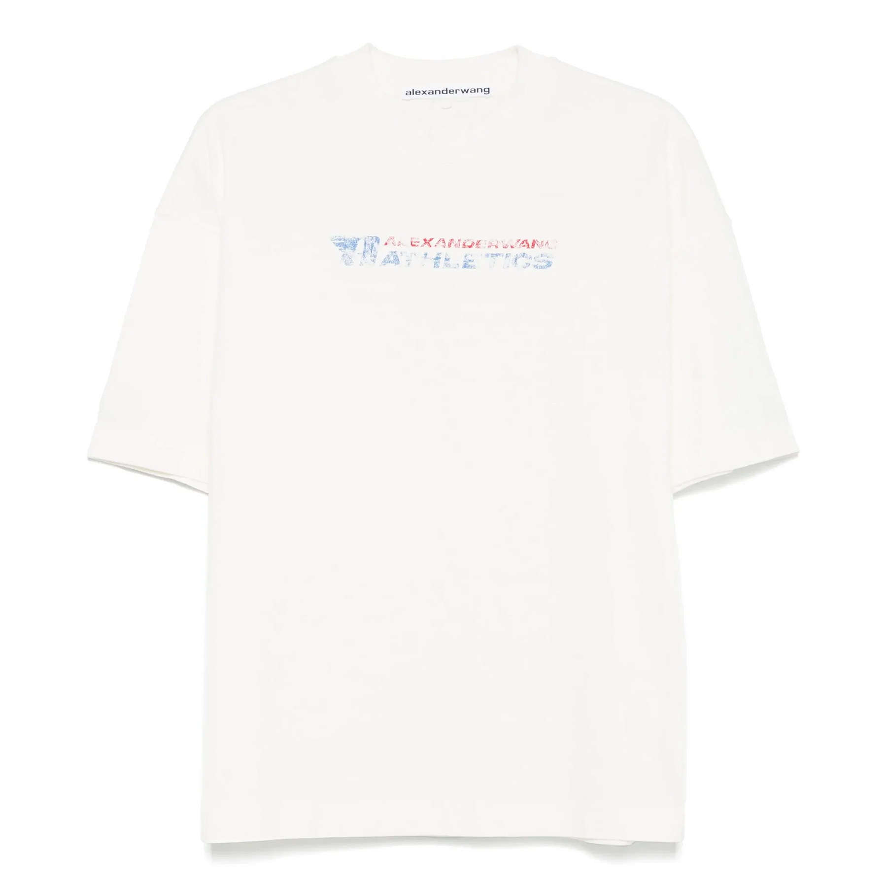 An "Alexanderwang athletics" logo defines unisex jersey t-shirt in white.