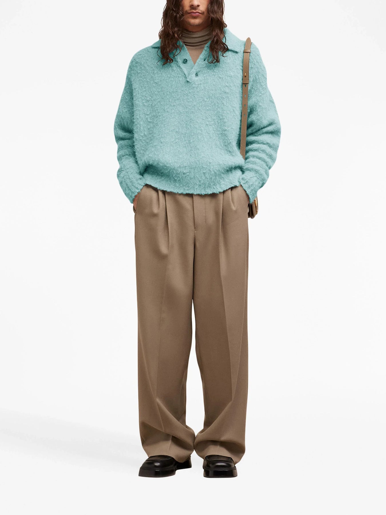 Breathe new life into your wardrobe with AMI Paris' Hairy Light Polo, skillfully crafted from an alpaca wool blend with a jersey stitch knit. This polo, with its relaxed fit and absence of embellishment, is an essential addition to your casual look.