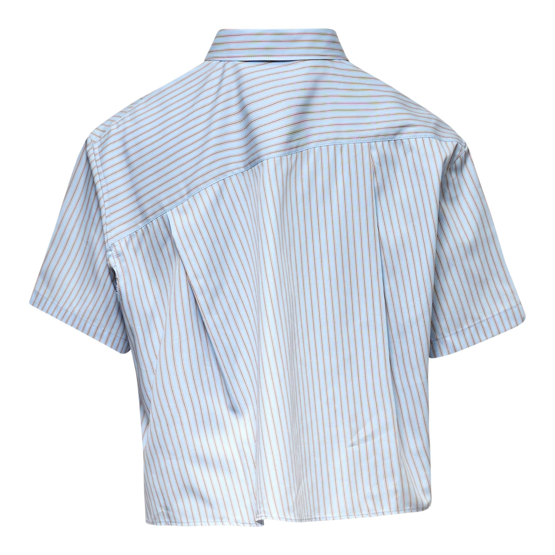 The RE;CODE Asymmetrical Stripe Cropped Shirt delivers contemporary minimalism with architectural design elements. Crafted from crisp cotton poplin in classic blue and white pinstripes, featuring an innovative asymmetric hemline and cropped silhouette. The oversized fit and modern proportions create a sophisticated statement piece for the contemporary wardrobe.