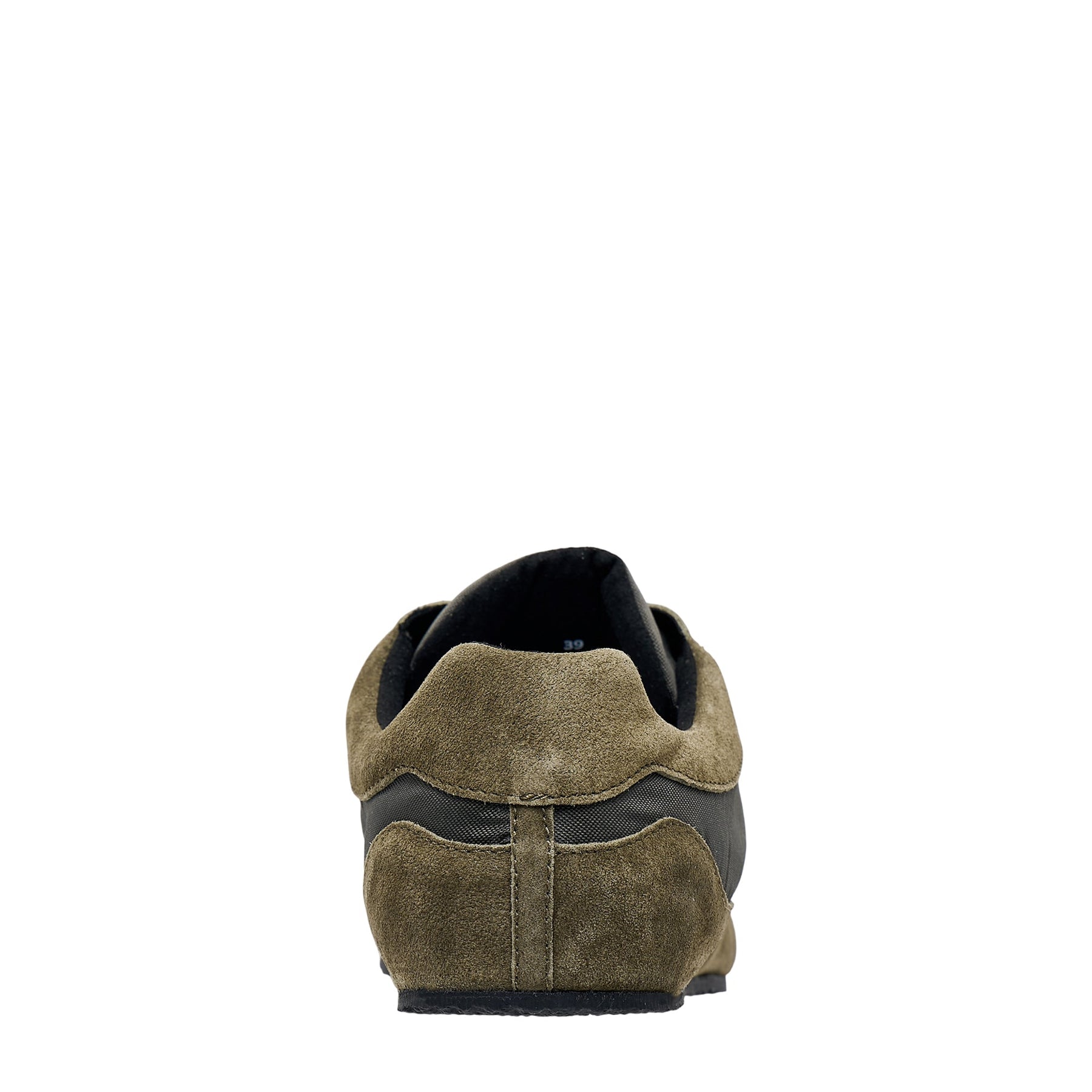 The Cecilie Bahnsen Blaise Sneakers deliver contemporary luxury with mixed-material construction and refined craftsmanship. Crafted from premium suede and technical nylon in sophisticated olive and charcoal tones, featuring decorative beaded lace details for a distinctive feminine touch. The low-profile silhouette combines athletic functionality with the brand's signature romantic aesthetic.