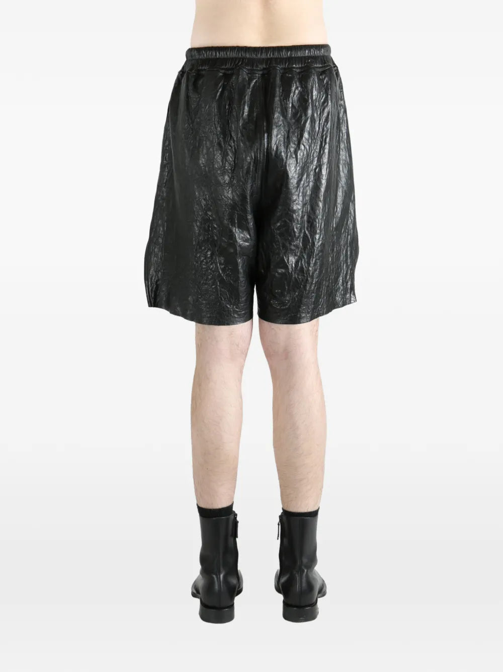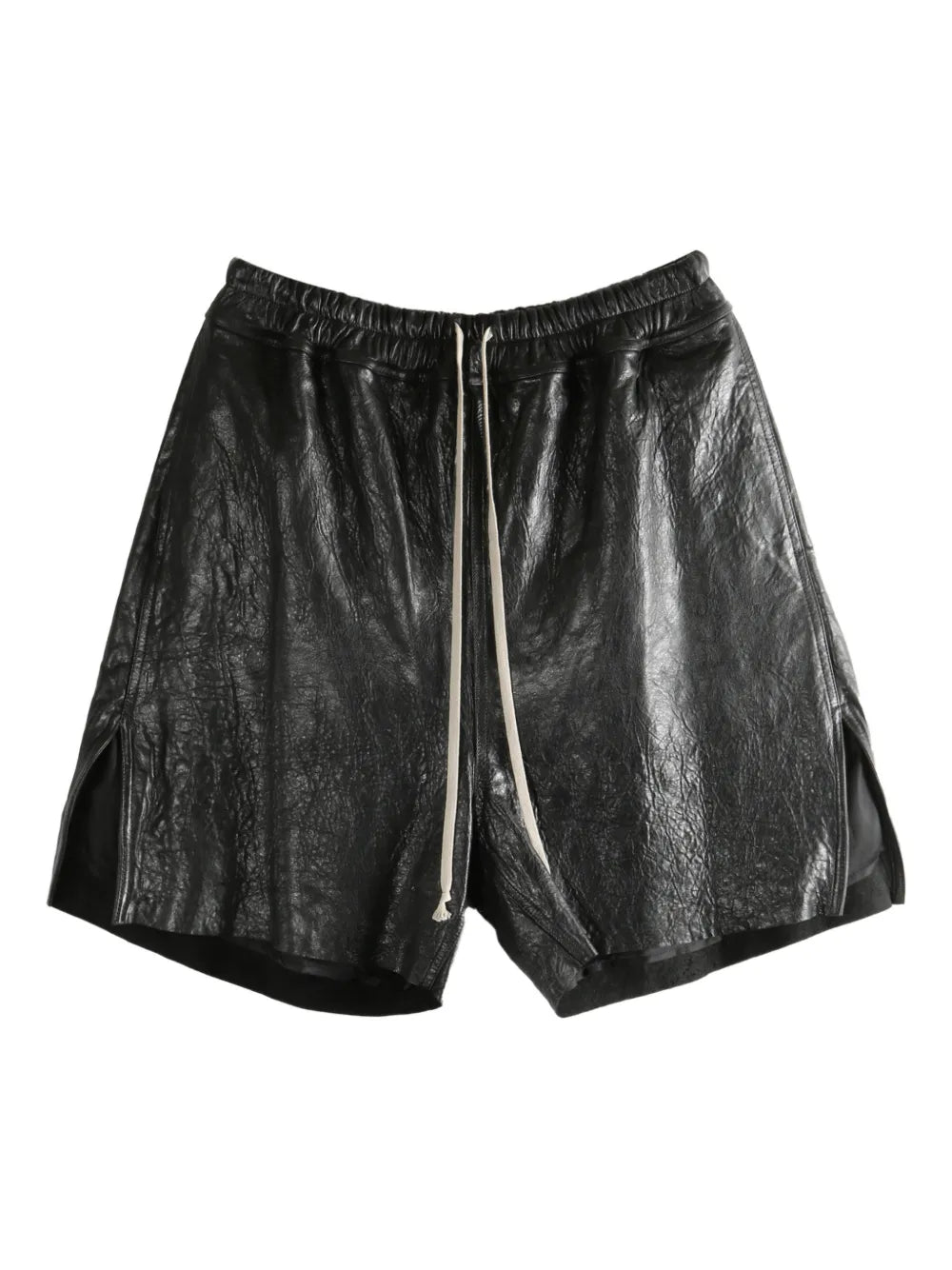 Rick Owens Boxers Tumbled Lamb deliver avant-garde luxury with premium leather construction and architectural silhouette. Crafted from supple tumbled lambskin in rich black, featuring an elasticated waistband with contrast drawstring closure. The deconstructed boxer-style design creates a bold statement piece that embodies Rick Owens' signature dark aesthetic.