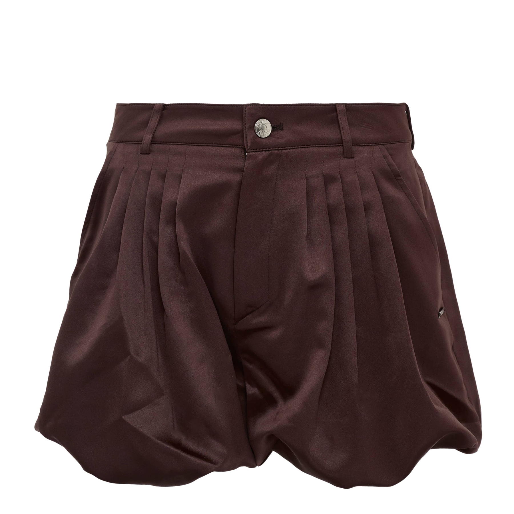 BONBOM Bubble Tuck Shorts deliver contemporary femininity with a distinctive bubble silhouette and sophisticated tailoring. Crafted from premium wool-blend fabric in rich burgundy, featuring a high-waisted design with structured pleating and gathered hem detail. The architectural bubble shape and refined construction create a statement piece that balances playful proportions with elegant craftsmanship.