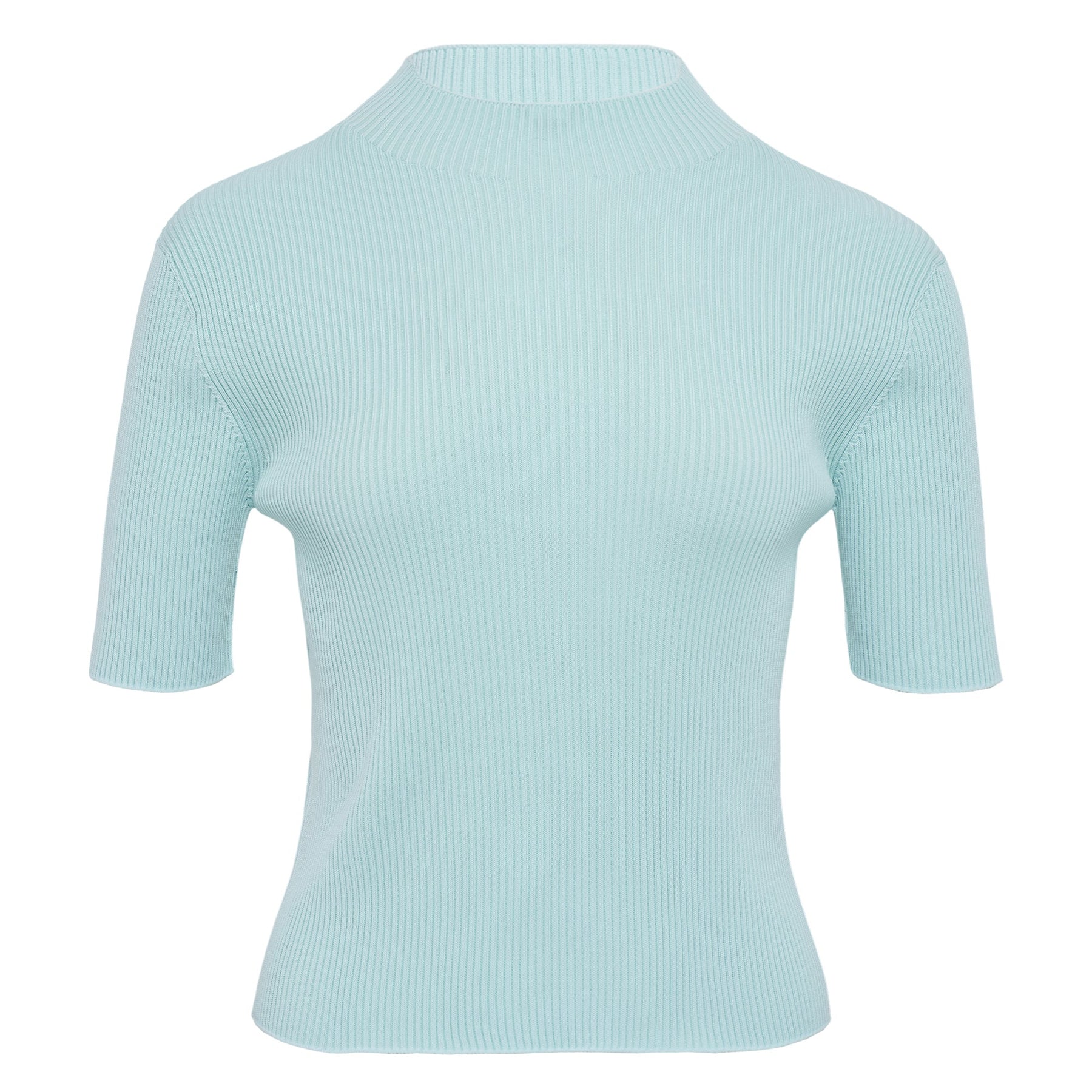 CFCL Portrait Short Sleeve Top delivers contemporary elegance with innovative Japanese design sensibility. Crafted from premium ribbed knit fabric in soft mint blue, featuring a sophisticated mock neckline and tailored fit. The structured knit construction and modern silhouette create a versatile piece perfect for elevated casual styling.