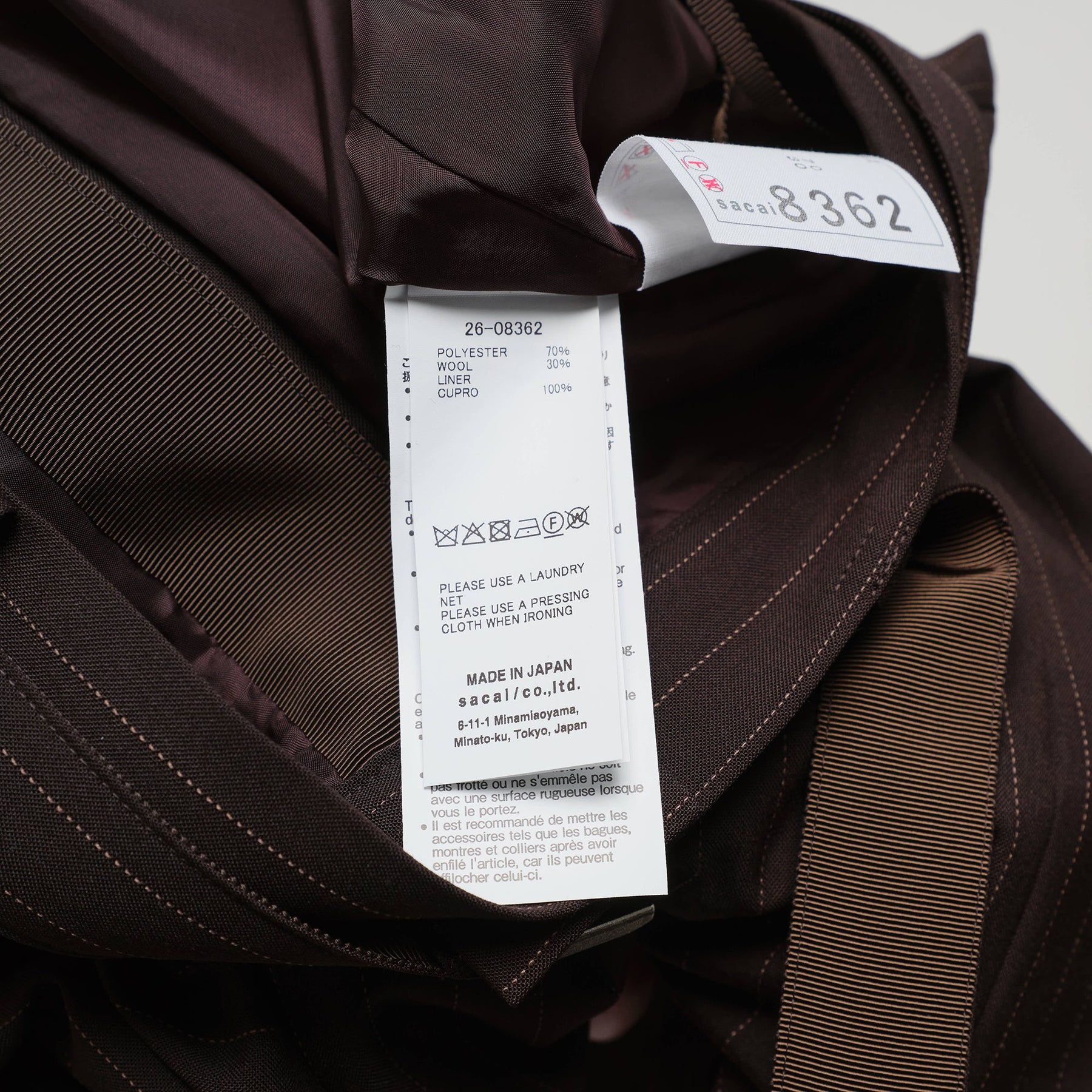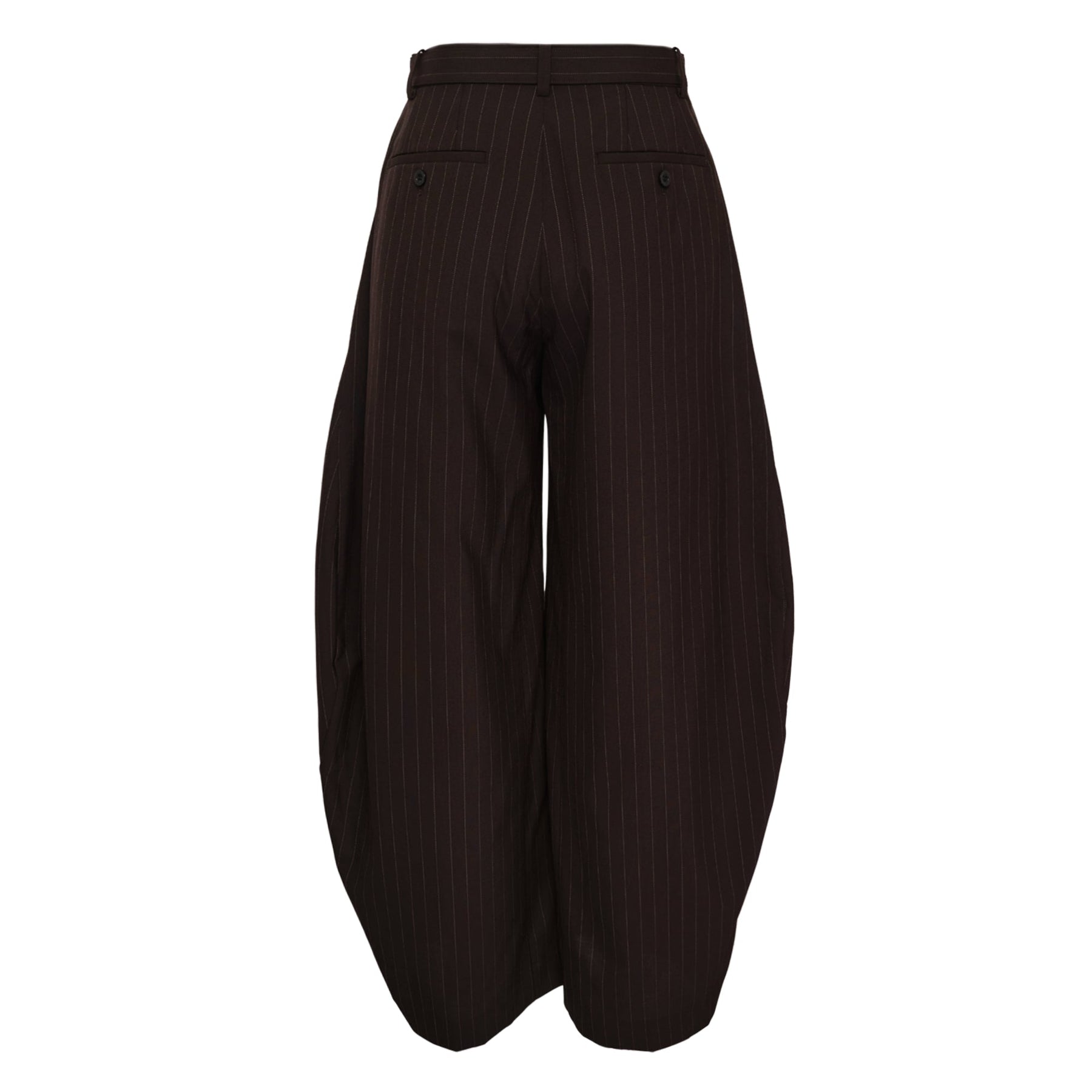 sacai Chalk Stripe Pants deliver contemporary sophistication with architectural tailoring and innovative design elements. Crafted from premium wool blend fabric in deep charcoal with subtle chalk pinstripes, featuring the brand's signature deconstructed aesthetic. The wide-leg silhouette and adjustable belt closure create a modern statement piece that embodies sacai's avant-garde approach to classic suiting.