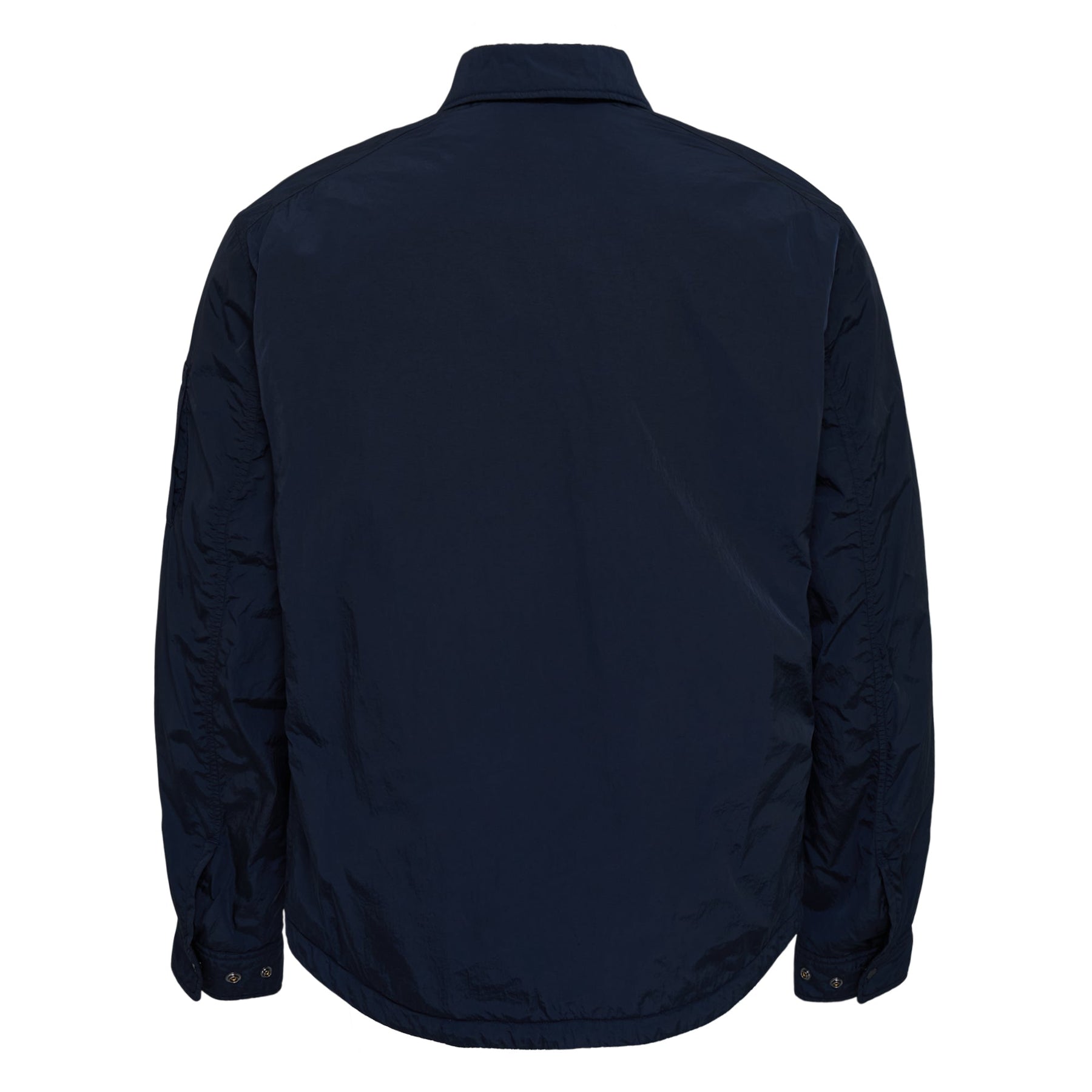 The C.P. Company Chrome-R Padded Lens Overshirt delivers innovative design with signature goggle lens detailing and technical construction. Crafted from lightweight padded nylon in sophisticated navy, featuring the brand's iconic lens element integrated into the chest pocket. The oversized fit and technical fabrication create a contemporary statement piece that bridges streetwear and high-fashion functionality.