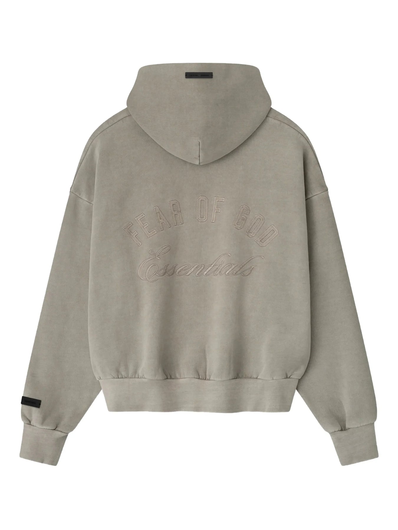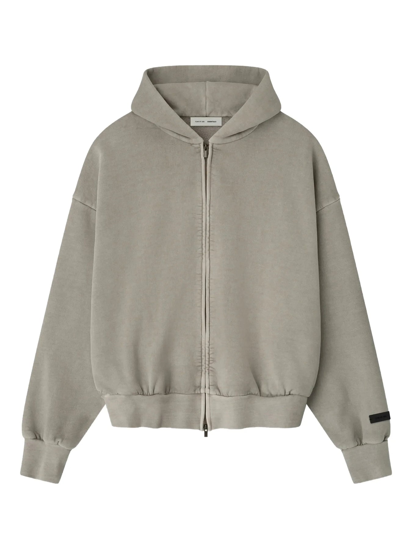 Fear of God ESSENTIALS Classic Full Zip Hoodie delivers elevated streetwear comfort with minimalist luxury design. Crafted from premium cotton blend fleece in sophisticated sage green, featuring the brand's signature oversized silhouette and relaxed fit. The clean aesthetic and high-quality construction make this an essential piece for contemporary casual wardrobes.