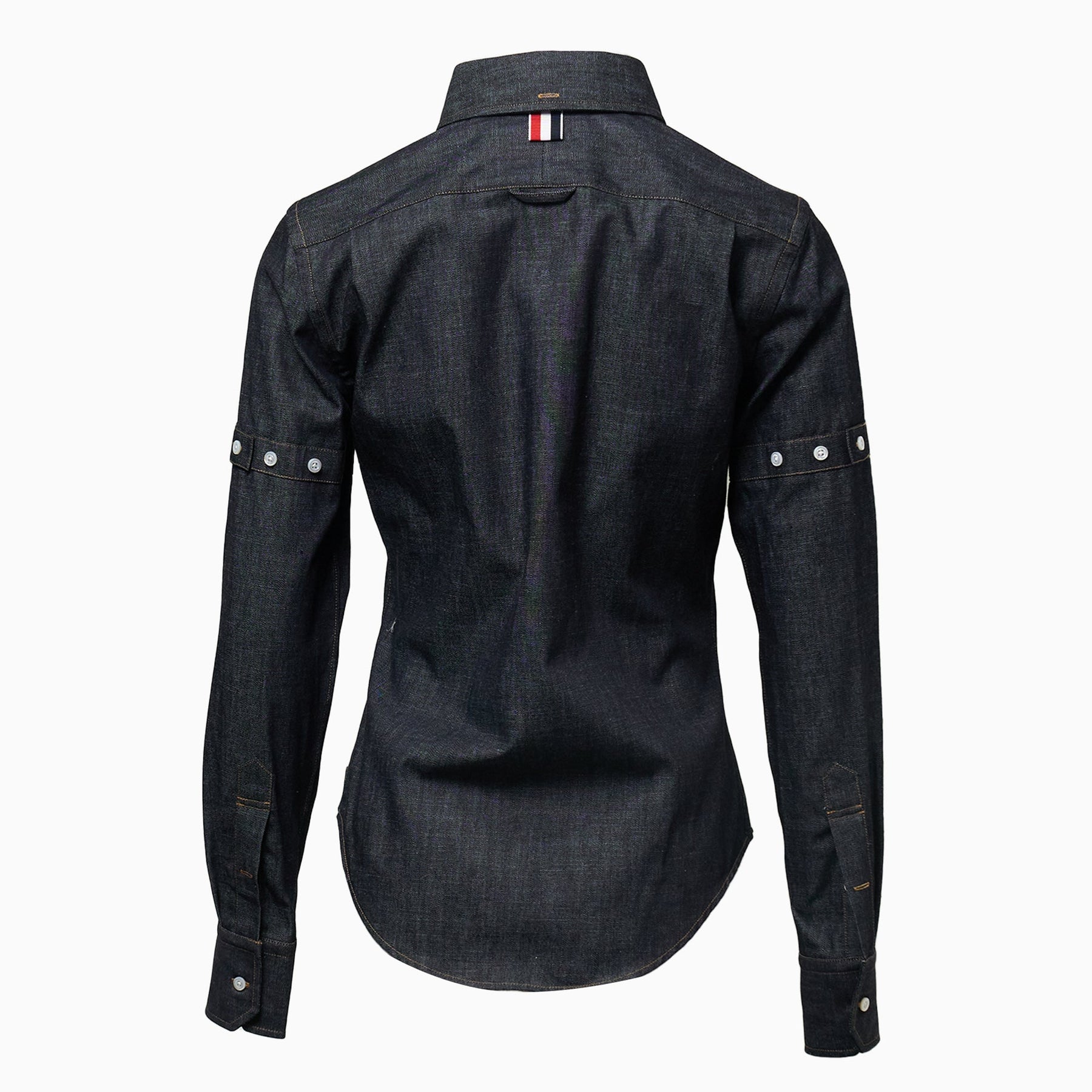 The Thom Browne Classic Long Sleeve Point Collar Shirt delivers refined menswear tailoring with signature contemporary details. Crafted from premium indigo denim with structured construction and clean finishing throughout. The classic point collar and signature Thom Browne label detail create a sophisticated foundation piece for modern wardrobes.