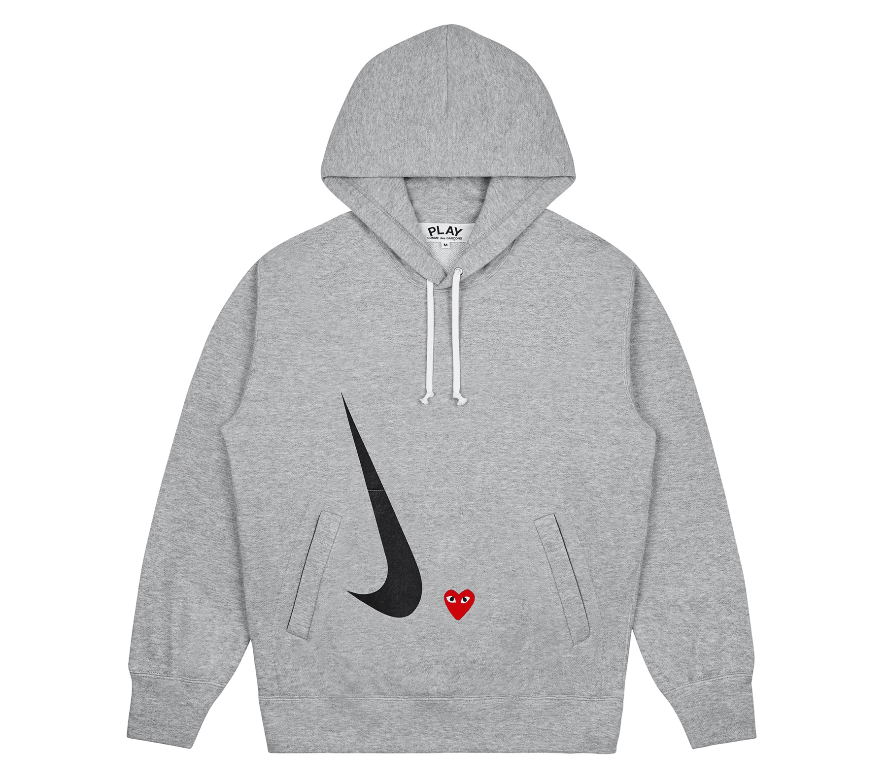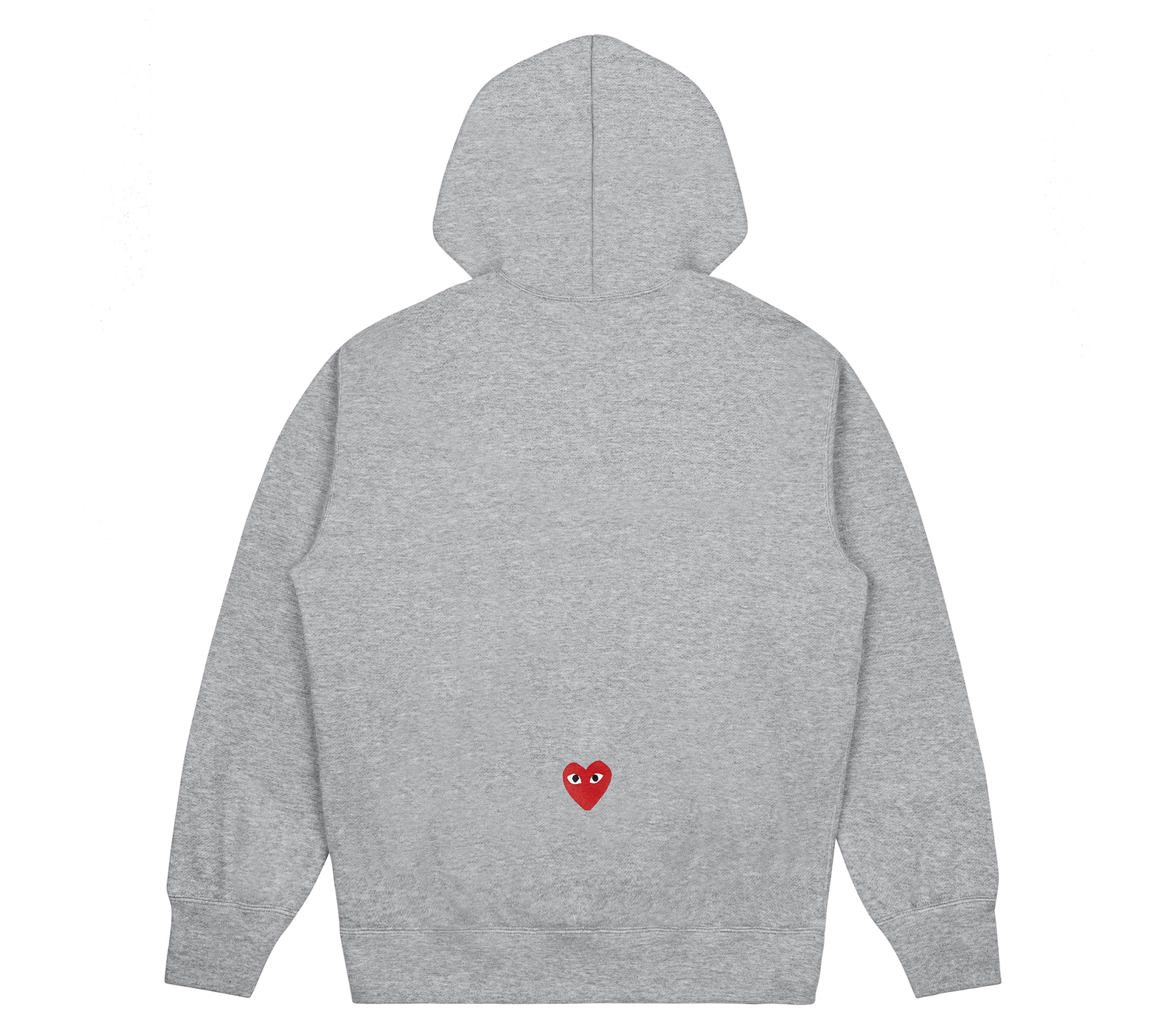 Bringing a flash of iconic streetwear branding to a laid-back staple,?? COMME des GARCONS PLAY puts the Nike logo and red emblem on the front pocket of this full zip hoody.