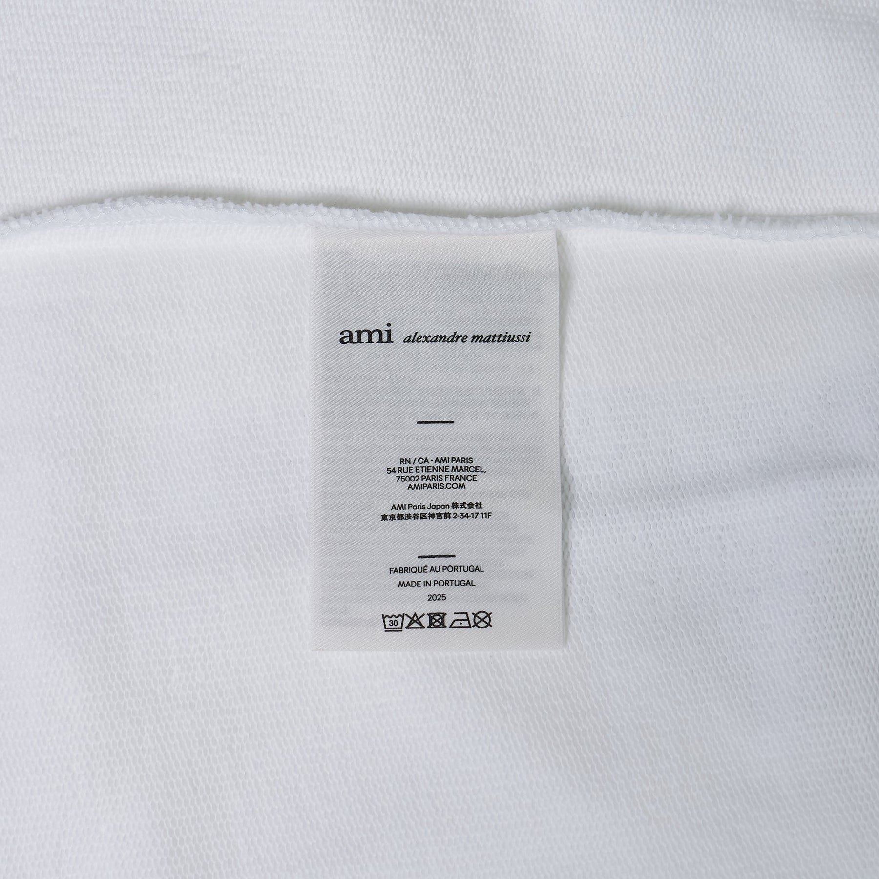 AMI Contrasted Ami De Coeur Hoodie delivers Parisian streetwear with playful branding and contemporary comfort. Crafted from premium cotton fleece in crisp white, featuring the signature embroidered Ami de Coeur logo with contrasting black detail. The full-zip construction and relaxed silhouette create versatile layering for modern casual wardrobes.