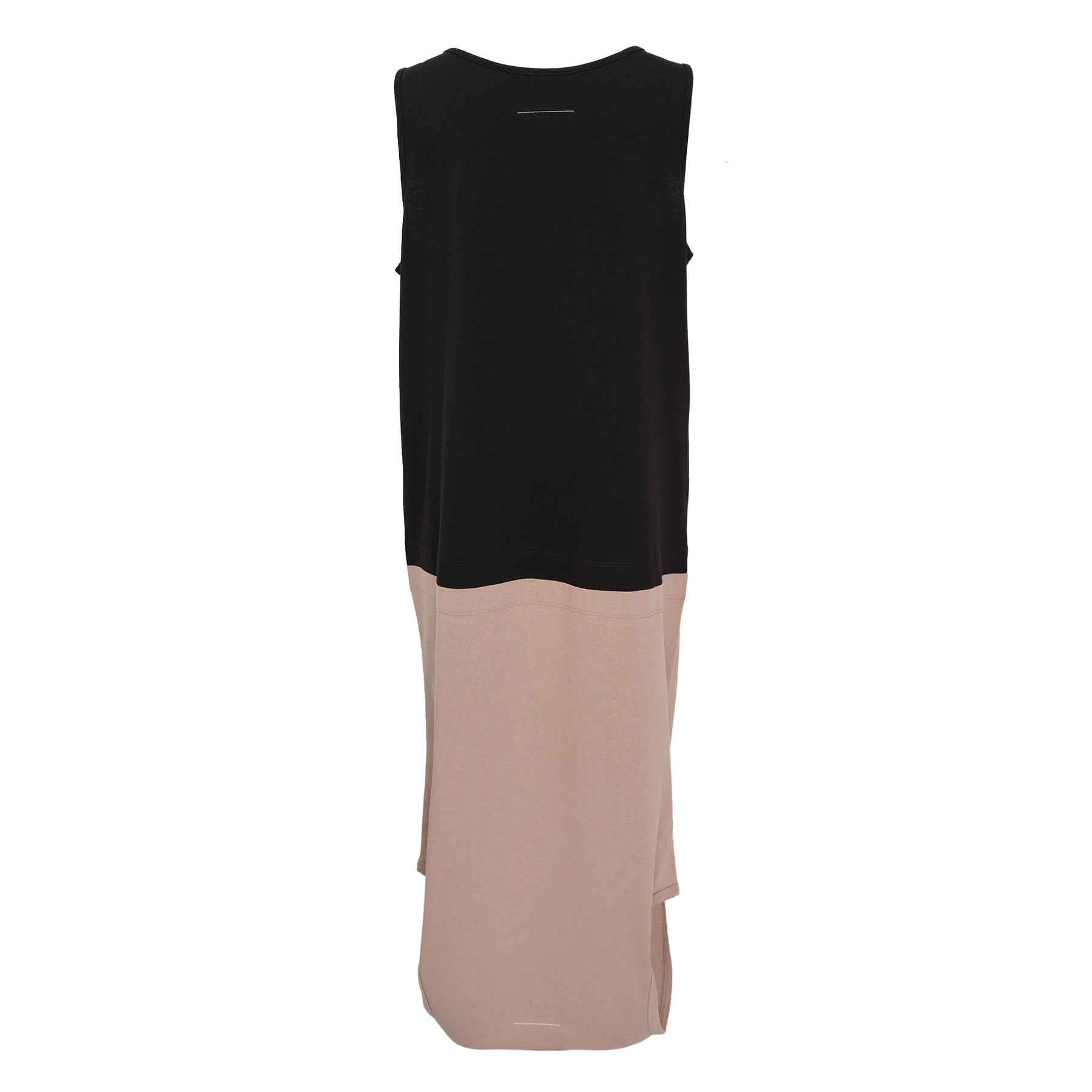 MM6 Convertible Midi Tank Dress delivers versatile styling with innovative design functionality. Crafted from soft cotton blend in neutral beige with contrasting black hem panel, featuring convertible construction that transforms from tank to layered silhouette. The relaxed fit and signature MM6 minimalist aesthetic create an effortlessly modern piece for contemporary wardrobes.