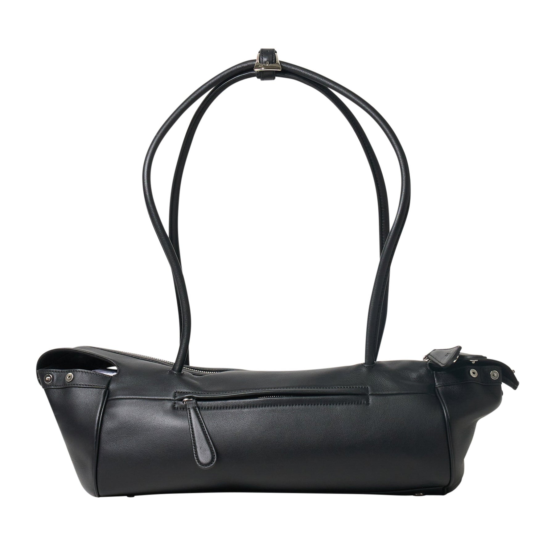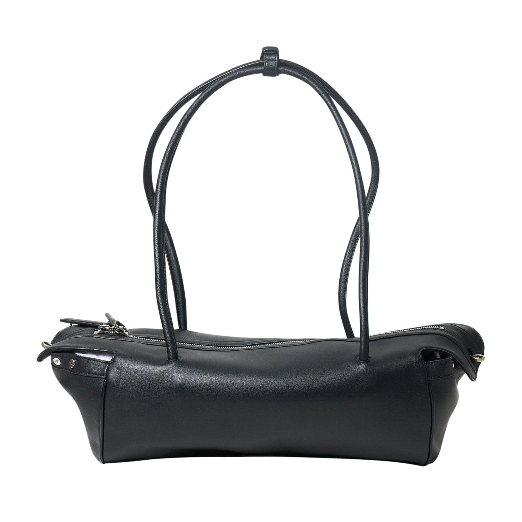 The OPEN YY CORGI Shoulder Bag delivers contemporary functionality with sophisticated leather craftsmanship. Constructed from premium black leather with structured silhouette and dual handle design for versatile carrying options. The minimalist aesthetic and quality construction create an essential accessory for modern lifestyles.