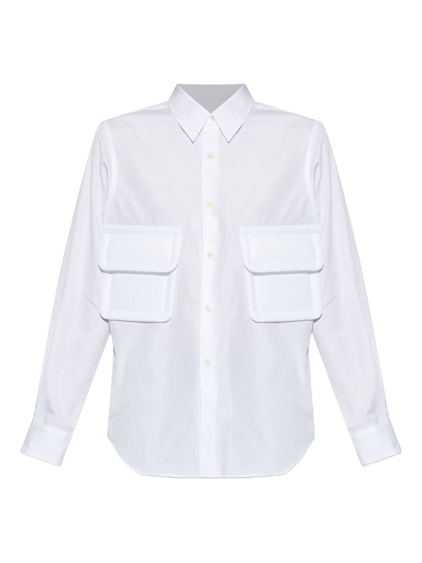 COMME des GARCONS Cotton Broad Shirt delivers minimalist Japanese design with architectural precision and contemporary silhouette. Crafted from premium cotton broadcloth in crisp white, featuring four functional chest pockets and clean geometric lines. The structured tailoring and signature CDG aesthetic create a sophisticated statement piece for modern wardrobes.