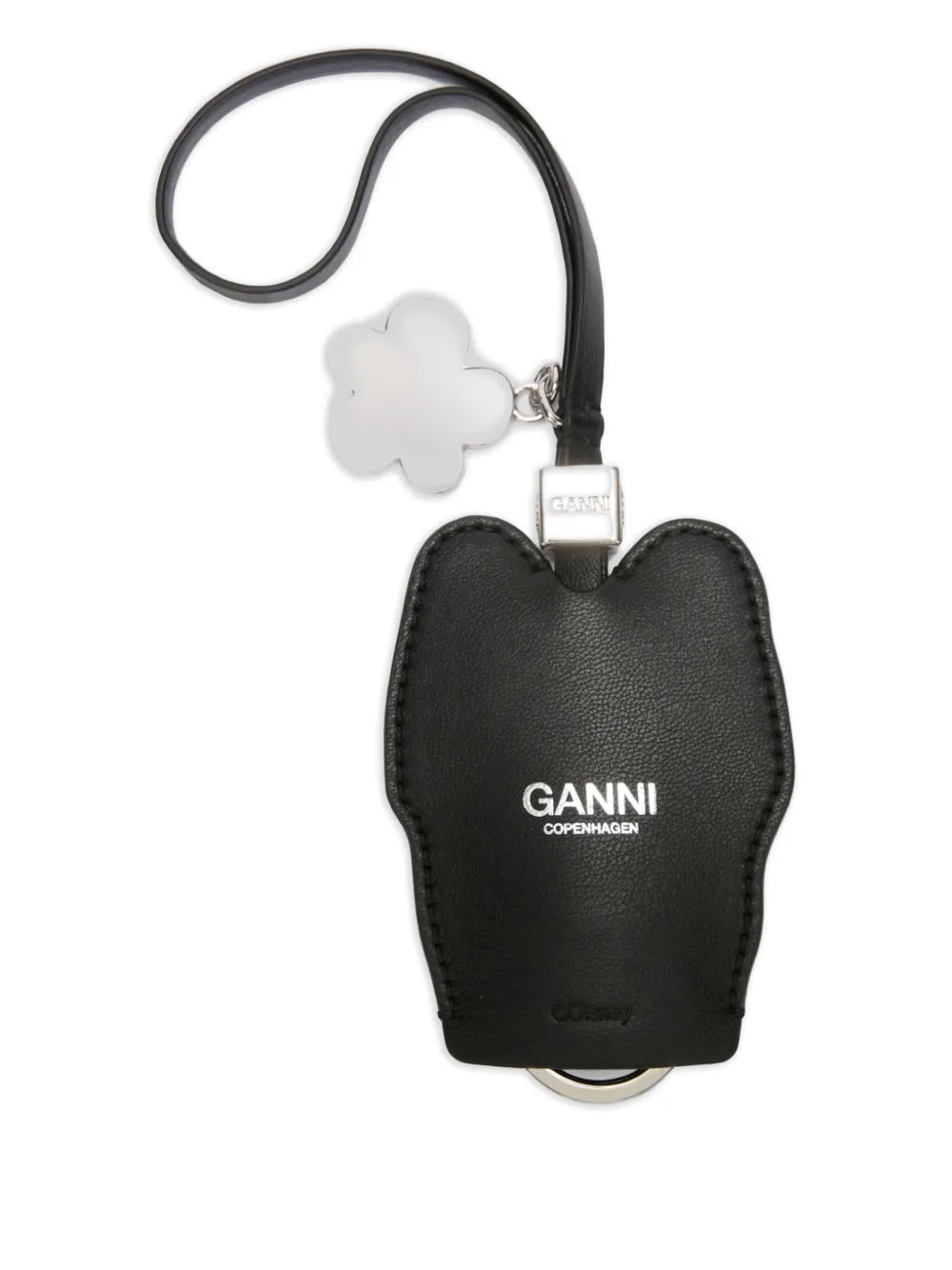 GANNI Daisy Key Bell delivers playful Danish design with whimsical charm for everyday accessories. Crafted with premium black leather construction featuring a Donald Duck character design and leopard print bow detail. The signature daisy flower charm and metal bell create a distinctive accessory that embodies GANNI's contemporary Scandinavian aesthetic.