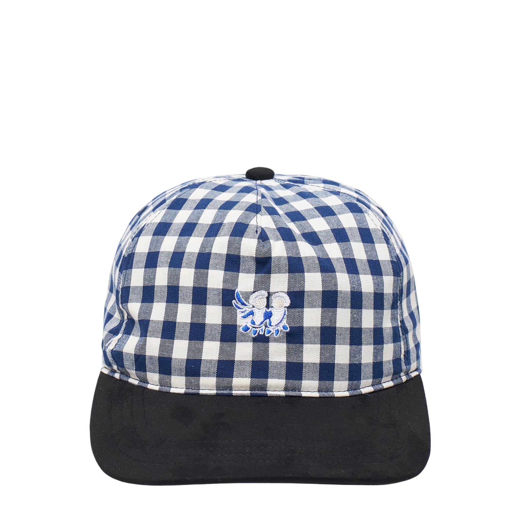 The JUNTAE KIM Embroidery Check Cap delivers contemporary Korean streetwear with sophisticated gingham patterning and custom embroidered details. Crafted from premium cotton in navy and white check pattern, featuring contrast black visor and structured crown construction. The signature embroidered motif and clean geometric design create a refined statement piece for modern urban styling.