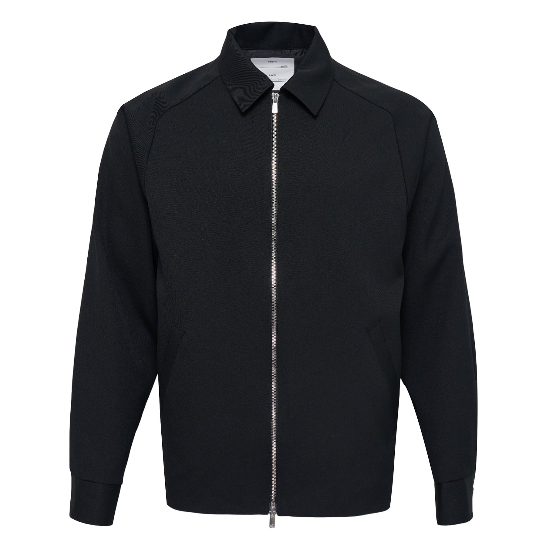 - A zip jacket made of firm, high-density wool gabardine.