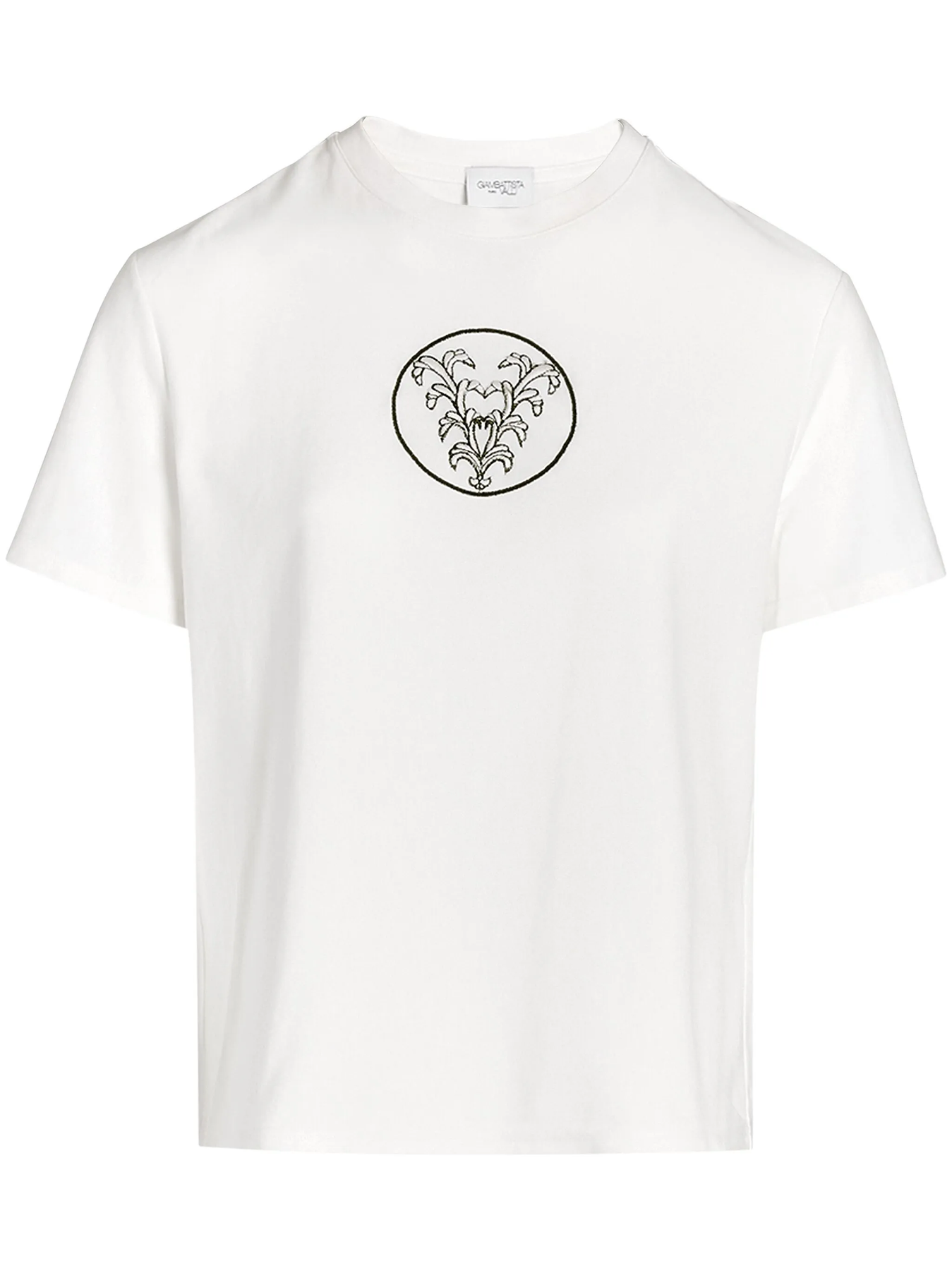 White T-shirt embroidered with a V for "Valli".