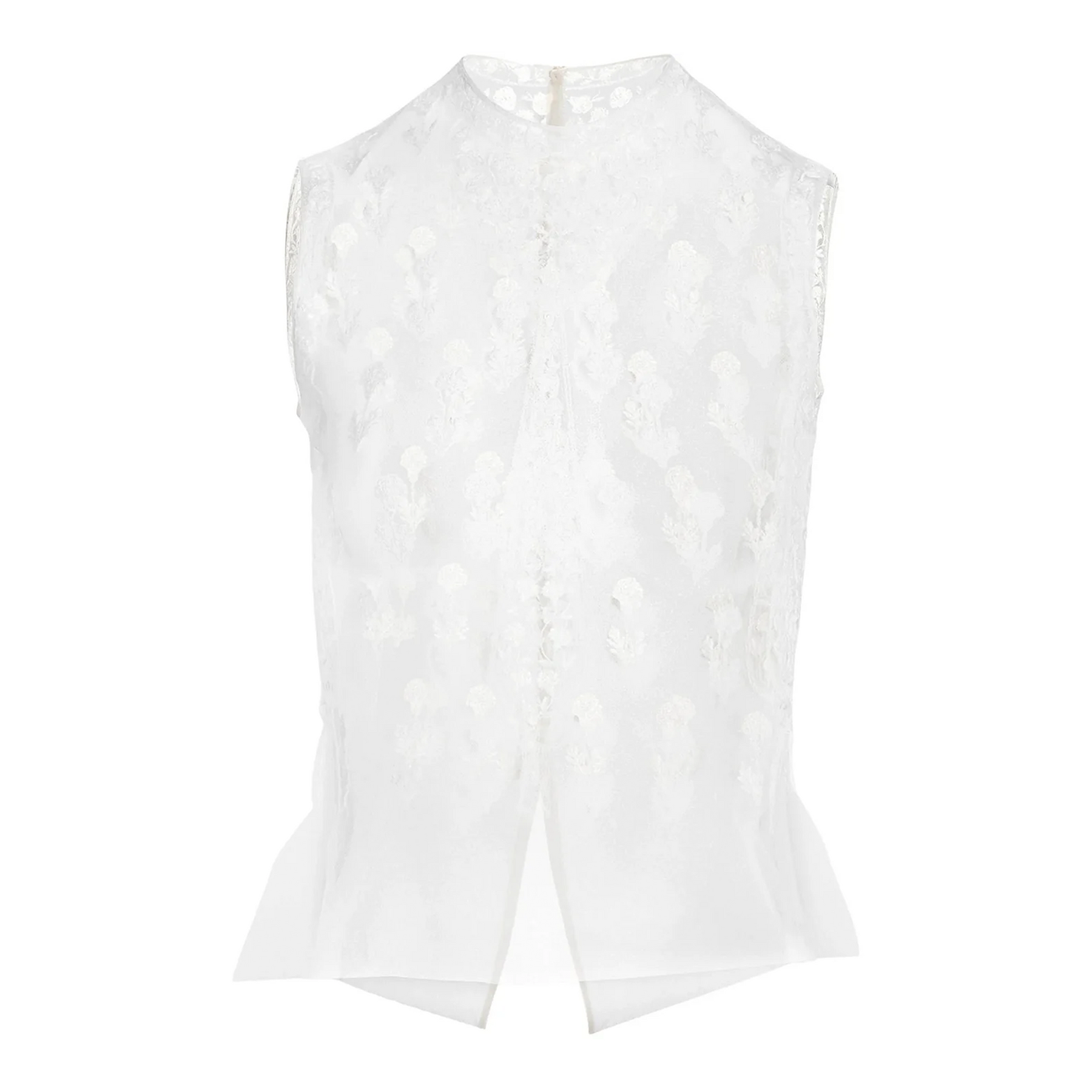 This sheer tank top is made of embroidered Poppy Lame tulle.