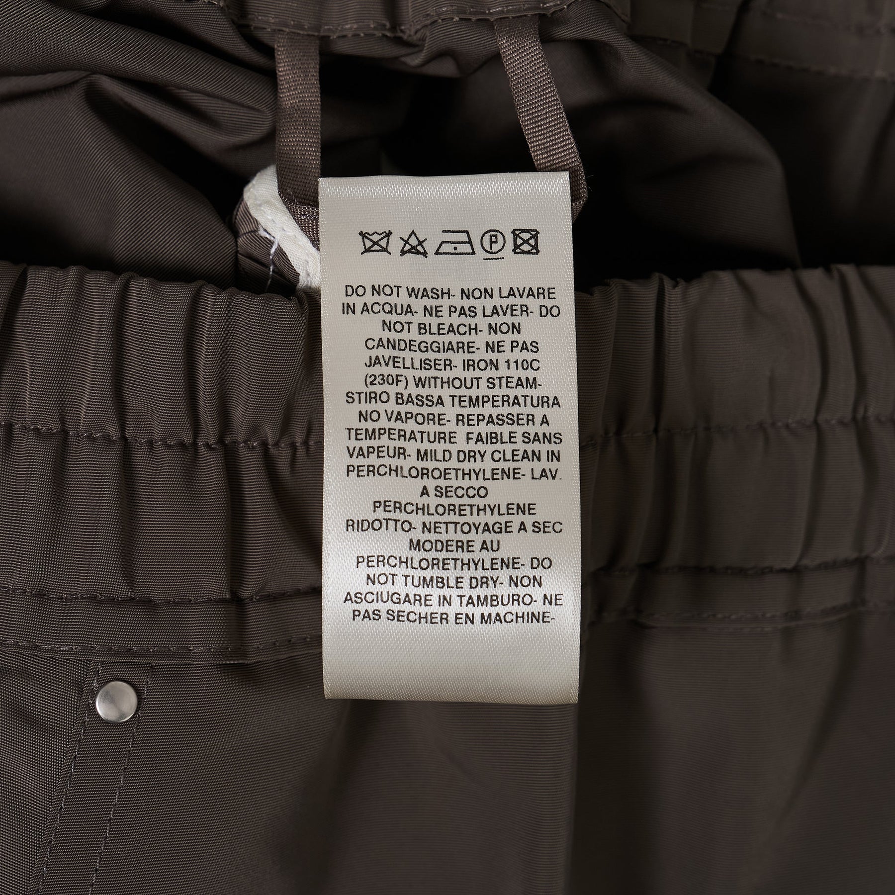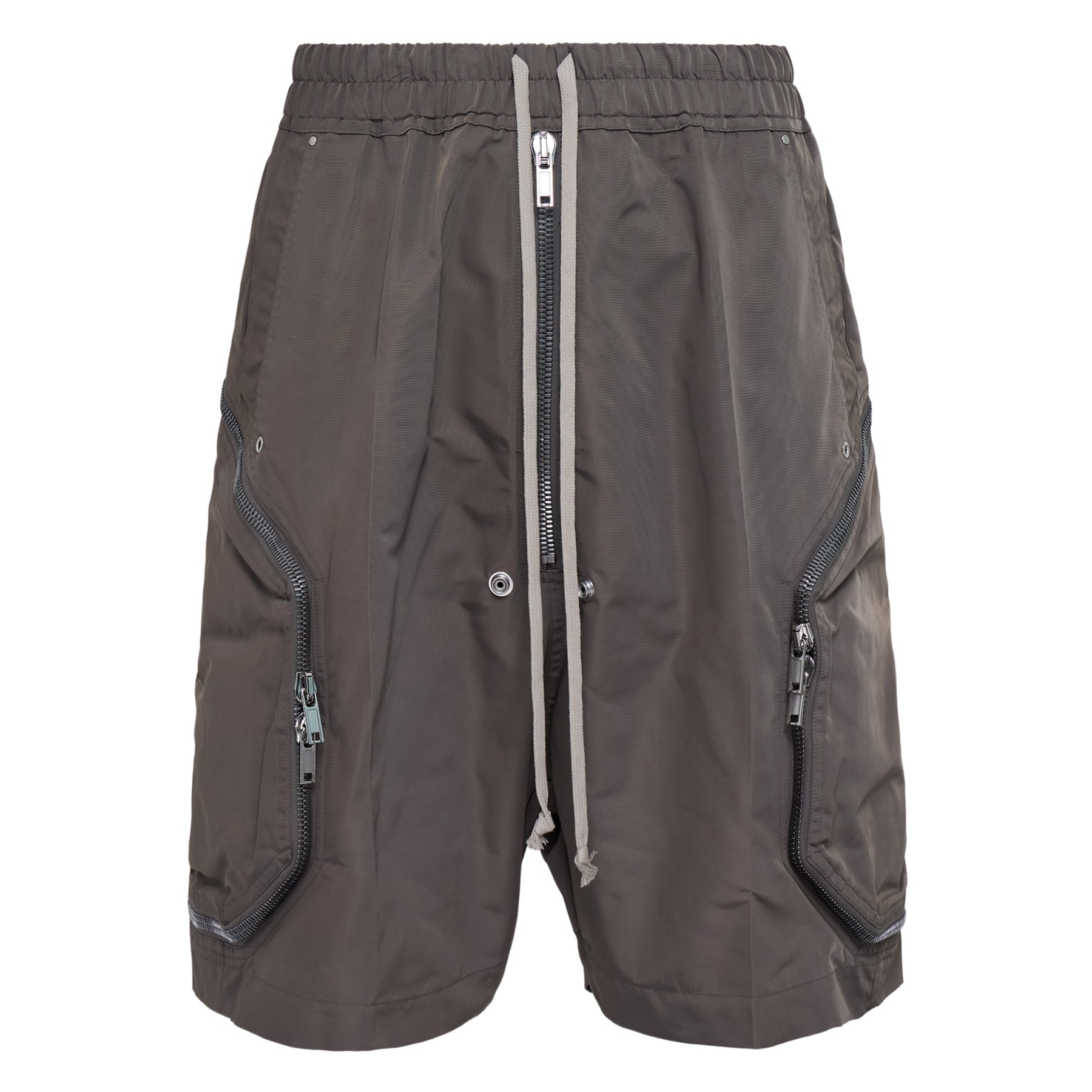 Rick Owens Heizer Bela Tech Faille delivers avant-garde functionality with technical performance and urban utility. Crafted from lightweight tech faille in charcoal gray, featuring multiple zip compartments and drawstring waist for adaptable wear. The architectural silhouette and signature Rick Owens construction create a statement piece for contemporary streetwear enthusiasts.
