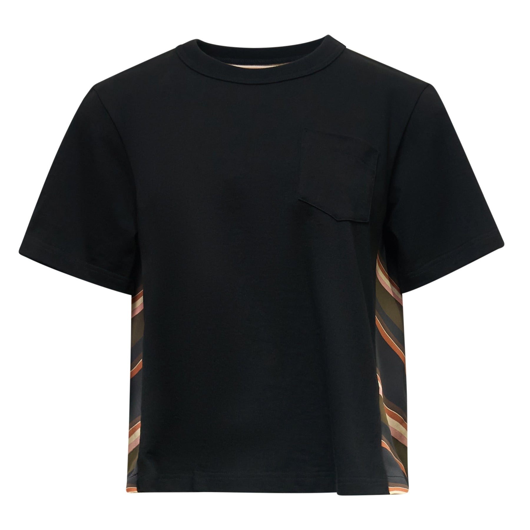 sacai Horizontal Stripe T-Shirt delivers contemporary Japanese design with architectural construction and innovative layering elements. Crafted from premium cotton jersey in classic black, featuring contrast striped panel details and deconstructed silhouette. The hybrid construction and signature sacai aesthetic create a statement piece that redefines modern streetwear.