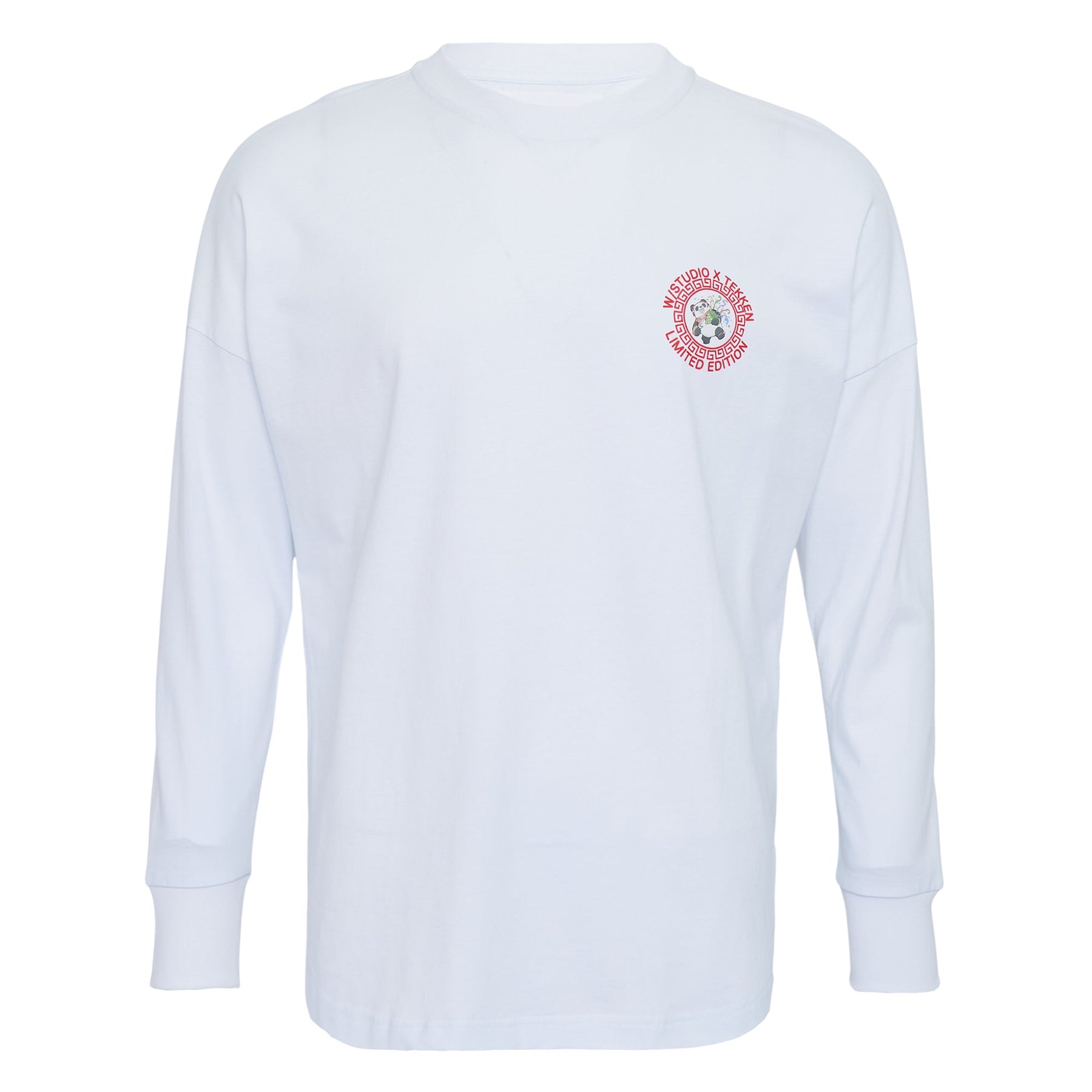 The W/STUDIO Longsleeves Tee delivers contemporary streetwear style with premium comfort and distinctive branding. Crafted from soft cotton jersey in clean white, featuring a circular logo graphic on the chest with bold red lettering. The relaxed fit and long sleeves create versatile layering piece for modern urban wardrobes.