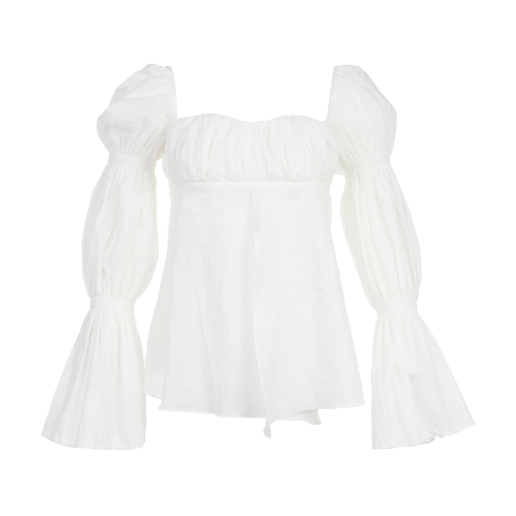 - Dramatic puffed sleeves with gathered cuffs