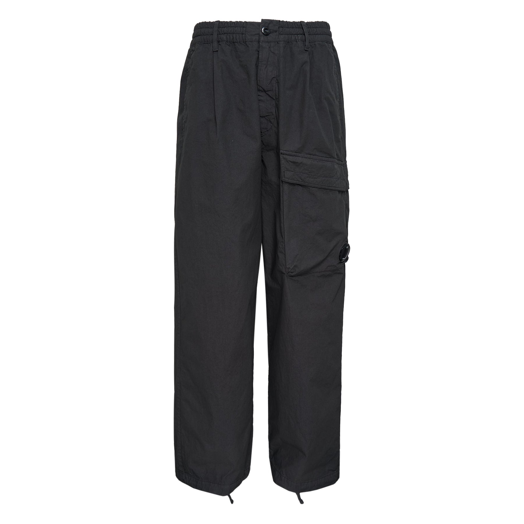 C.P. Company Micro-Reps Boxy Cargo Lens Pants deliver utilitarian functionality with signature Italian technical innovation. Crafted from micro-reps fabric in deep charcoal black, featuring the brand's iconic lens detail and oversized cargo pockets for maximum utility. The relaxed boxy silhouette and adjustable hem create a contemporary streetwear statement with military-inspired heritage.