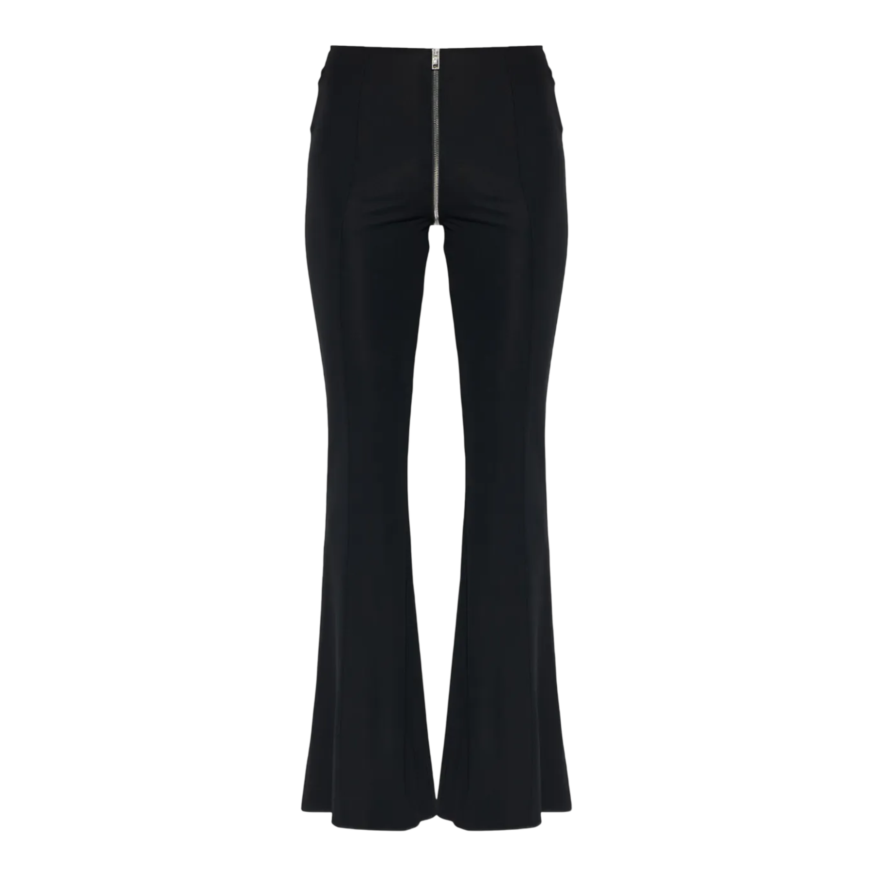 Alexander Wang Mid-Rise Zipper Front Pants deliver contemporary edge with modern tailoring and distinctive closure details. Crafted from premium stretch fabric in sleek black, featuring a front zipper closure that extends from waist to hem for adjustable styling. The flared silhouette and architectural design elements create a bold statement piece that bridges streetwear and high fashion.