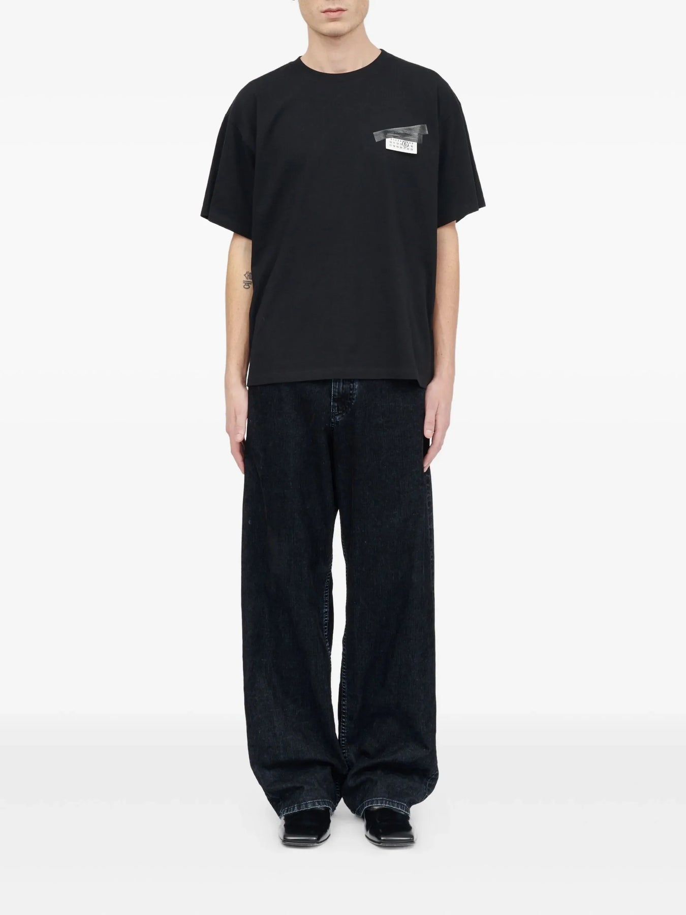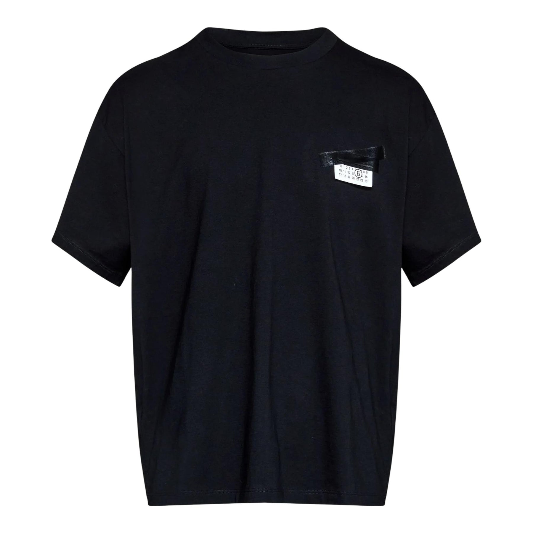 This T-shirt features a trompe l'oeil print of the signature numeric label, taped in place with a photorealistic packaging tape effect. Inspired by archival garments that have been altered by hand, the design plays with perception, irreverence, and illusion. Finished with the white stitch line - a quiet marker of MM6.