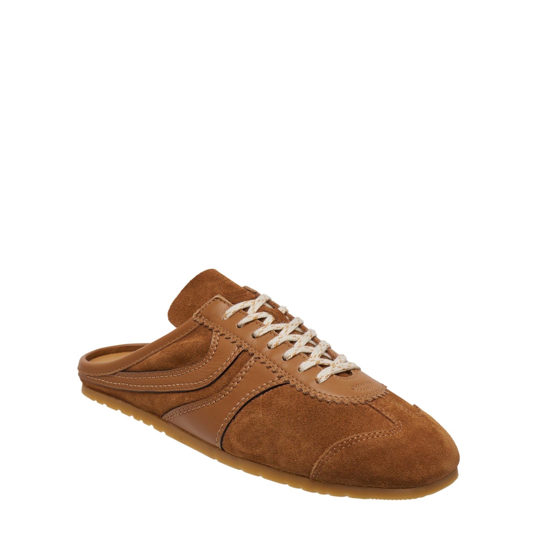 The Dries Van Noten Mule Slim Sneaker delivers contemporary luxury with effortless slip-on convenience. Crafted from premium suede with contrast leather detailing in warm brown tones, featuring athletic-inspired laces and modern silhouette. The hybrid design combines classic sneaker comfort with mule functionality for versatile modern styling.
