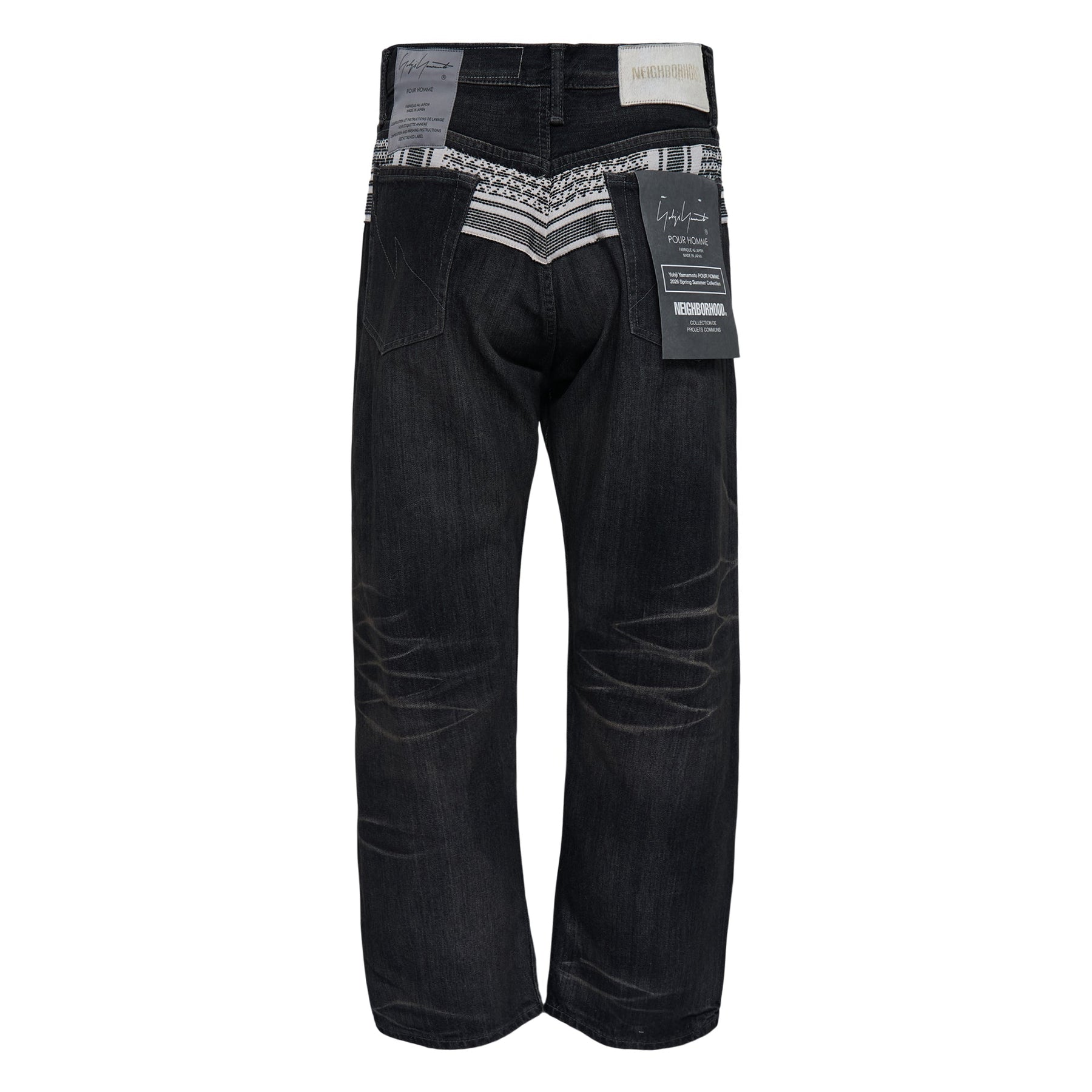 NEIGHBORHOOD Savage Jeans deliver authentic Japanese denim craftsmanship with contemporary urban styling. Constructed from premium black denim with subtle fading and distressed detailing, featuring signature patchwork elements and metallic hardware accents. The relaxed straight-leg silhouette embodies the brand's military-inspired aesthetic with rebellious streetwear sensibilities.