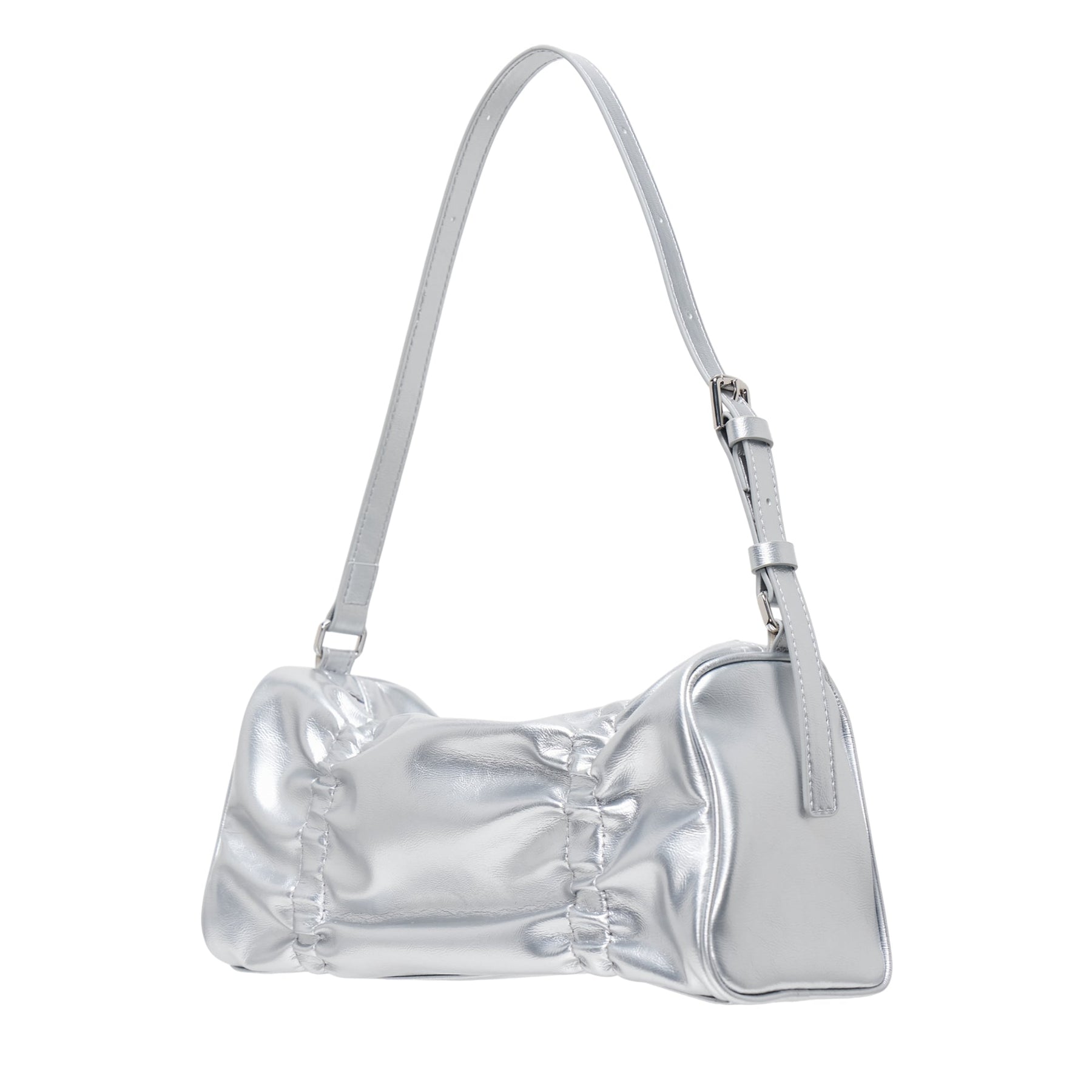 STAND OIL Pleats Bag delivers contemporary elegance with sculptural pleated construction and adjustable versatility. Crafted from premium metallic silver leather with gathered detailing across the front panel, creating distinctive texture and visual interest. The convertible design and signature pleated aesthetic make this an essential statement piece for modern wardrobes.