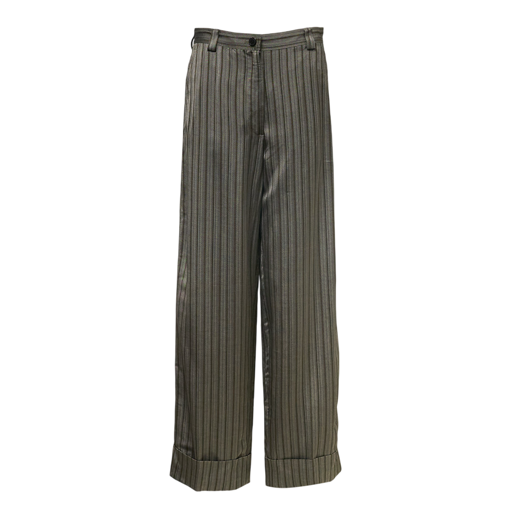 Dries Van Noten Regular Fit Casual Trousers deliver refined tailoring with contemporary comfort and versatile styling. Crafted from premium striped fabric in sophisticated olive tones, featuring precise pinstripe detailing and expert Belgian construction. The relaxed silhouette and turn-up cuffs create an effortlessly elegant look that bridges formal and casual dressing.