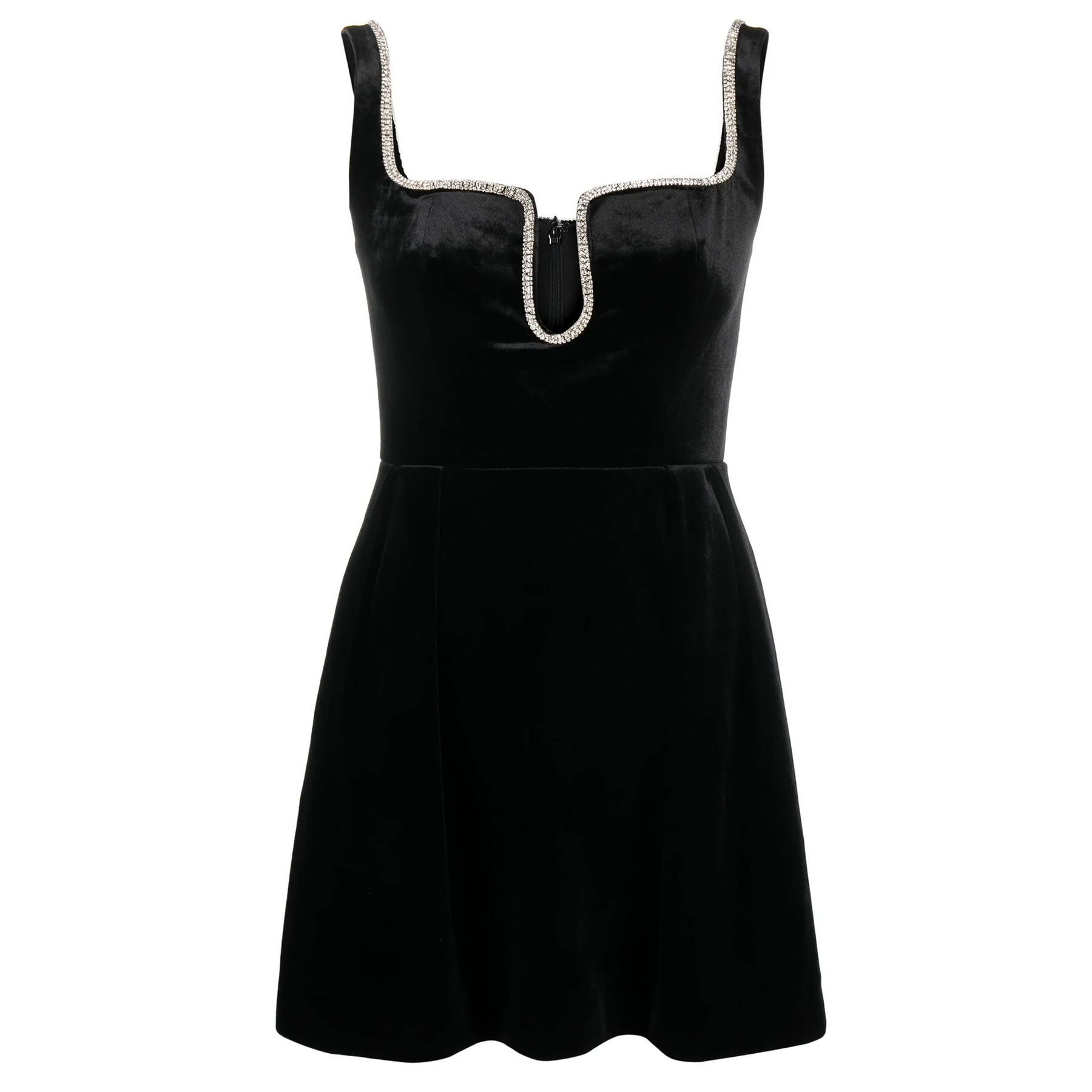 Cut for a thigh-length and designed in a crisp black colour, this minidress from Self-Portrait is defined by its velvet construction and dazzling crystals framing the neckline — a nod to the brand's penchant for bold silhouettes and adornments.