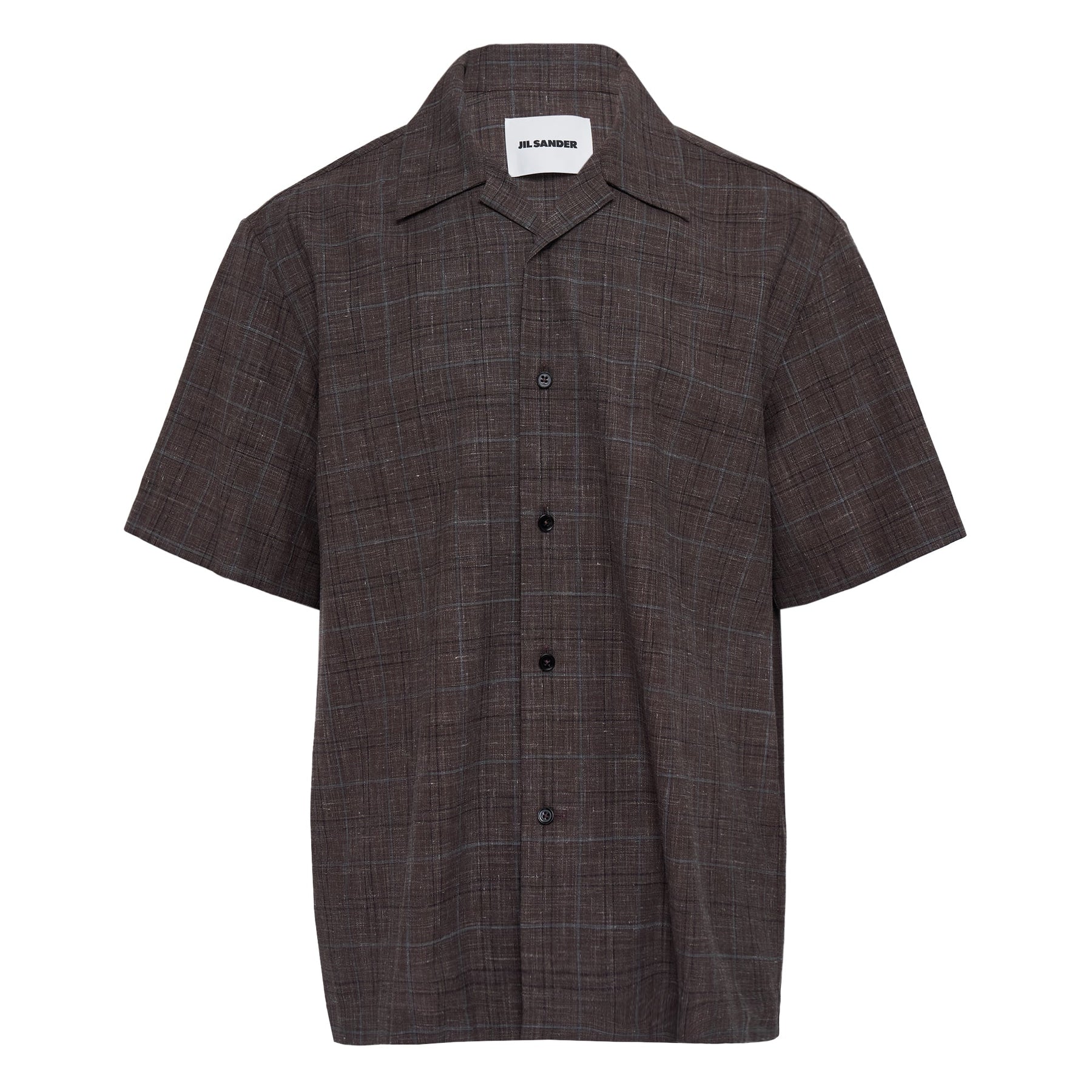 The Jil Sander Shirt Wool Linen Flame delivers minimalist sophistication with premium natural fiber construction. Crafted from a luxurious wool-linen blend in sophisticated charcoal check pattern, featuring short sleeves and classic button-front closure. The structured drape and premium hand-feel showcase the brand's signature clean aesthetic and timeless design philosophy.