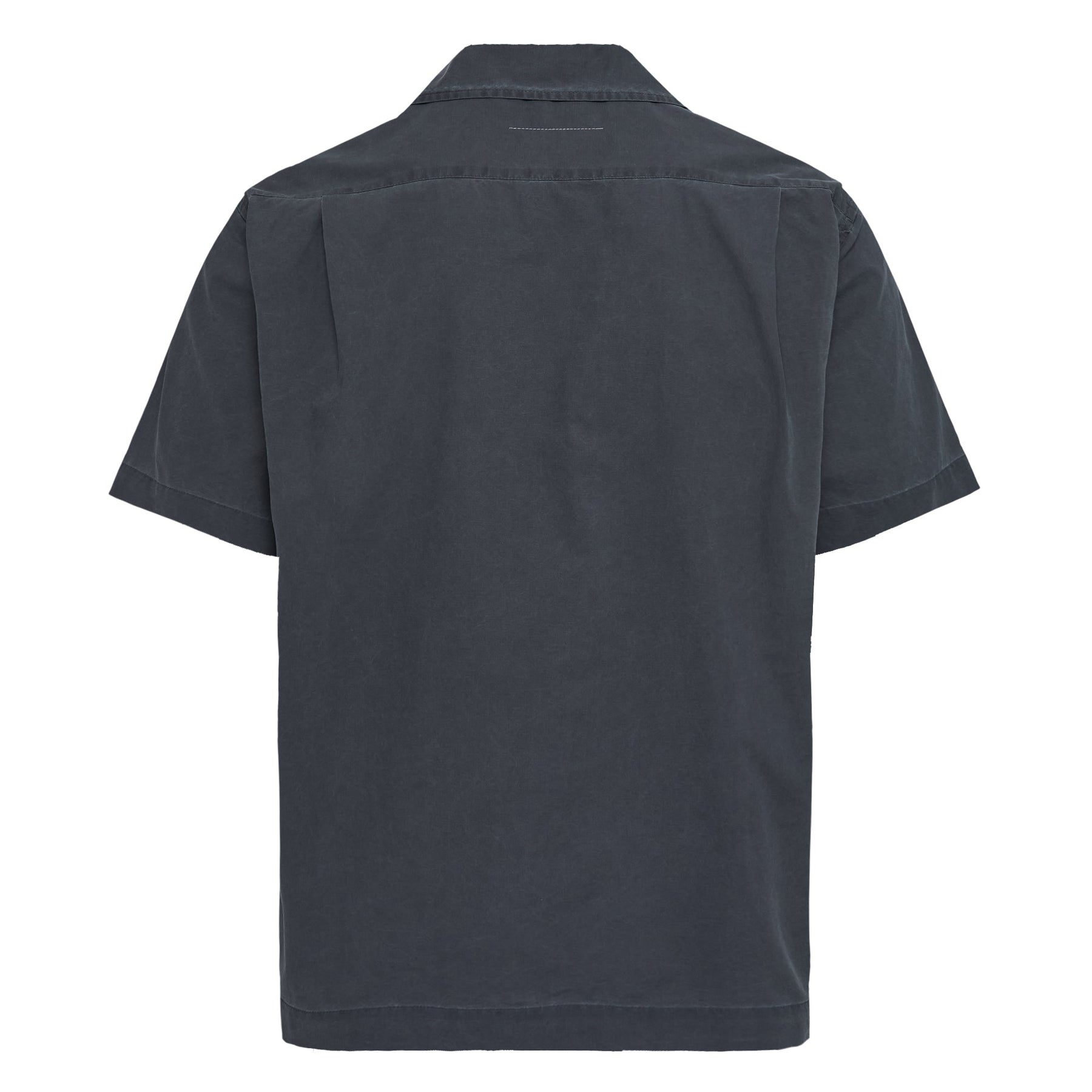 MM6 Short Sleeve Washed Cotton Shirt delivers contemporary minimalism with relaxed tailoring and premium construction. Crafted from pre-washed cotton in sophisticated charcoal gray with a lived-in texture and soft hand-feel. The camp collar design and dual chest pockets create a versatile piece that bridges casual and elevated dressing.