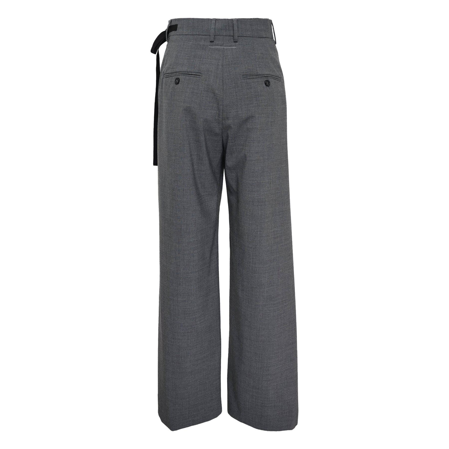MM6 Side Tie Tailoring Wool Pants deliver contemporary sophistication with architectural draping and asymmetrical construction. Crafted from premium wool suiting in sophisticated charcoal gray, featuring a distinctive side tie closure and wide-leg silhouette. The avant-garde wrap design and deconstructed tailoring reflect MM6's signature minimalist aesthetic with conceptual details.