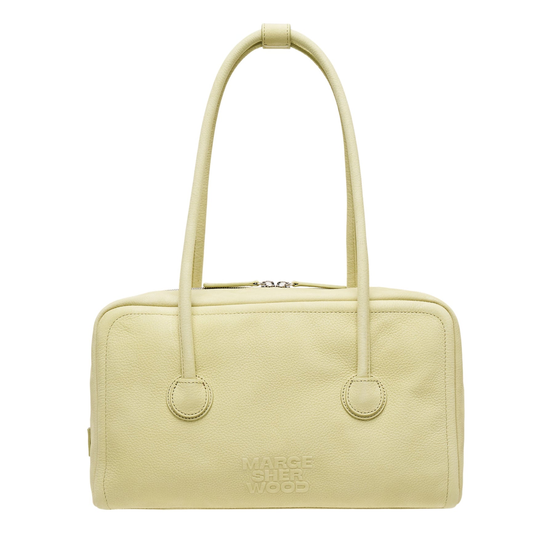 The MARGESHERWOOD Soft Boston delivers contemporary elegance with refined structured silhouette and premium leather construction. Crafted from supple pale yellow leather with meticulous stitching details, featuring dual top handles and spacious interior compartment. The minimalist aesthetic and signature MARGESHERWOOD craftsmanship create a versatile statement piece for modern sophistication.