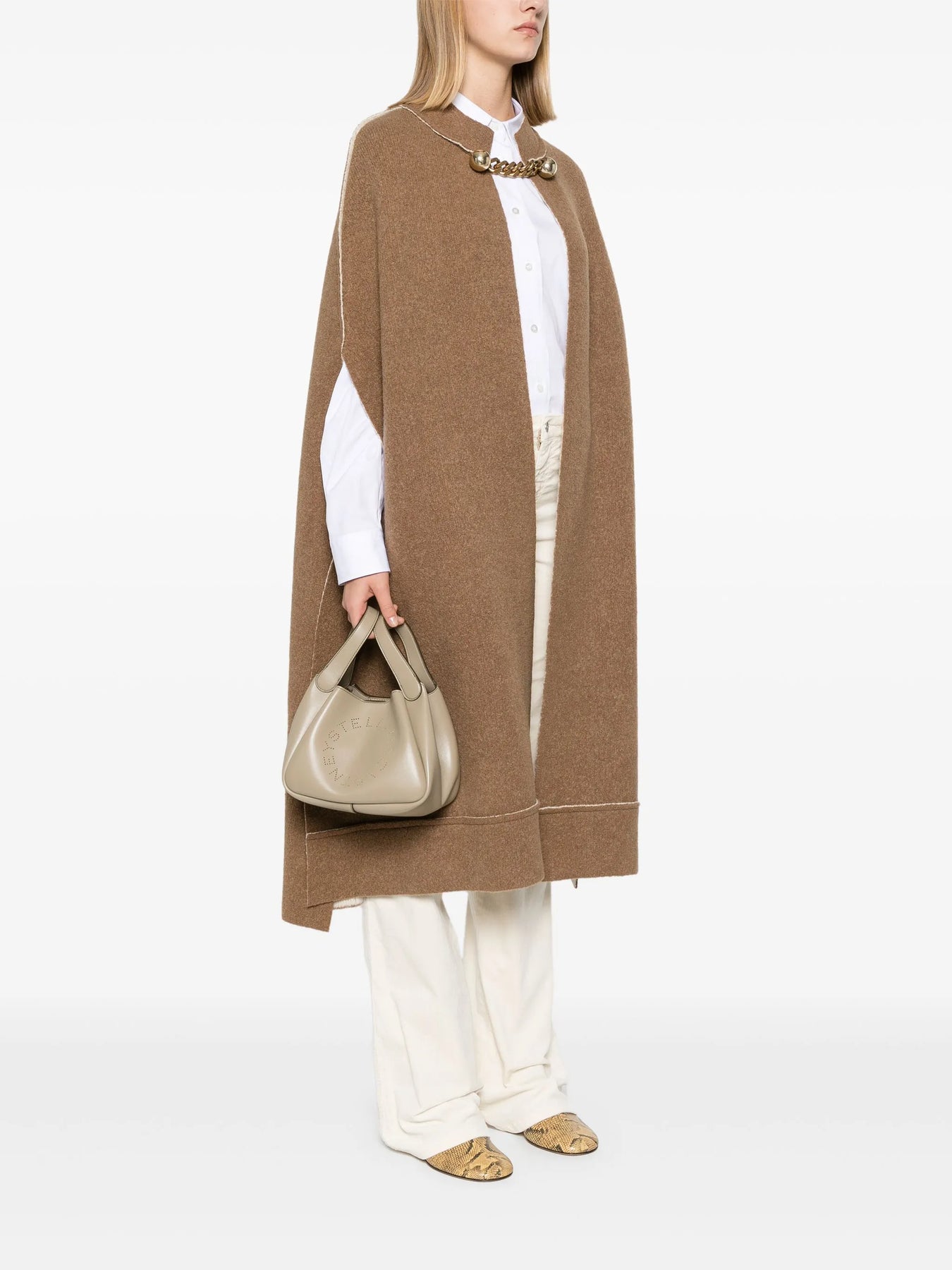 A new silhouette for Summer 2024, elevate the everyday with this versatile, compact Logo shoulder bag. Handcrafted from panels of Stella McCartney's luxury vegan leather alternative, it's topped with two handles and perforated with circular moniker logo on the front. You'll also find an adjustable, removable crossbody strap for total utilitarian ease.