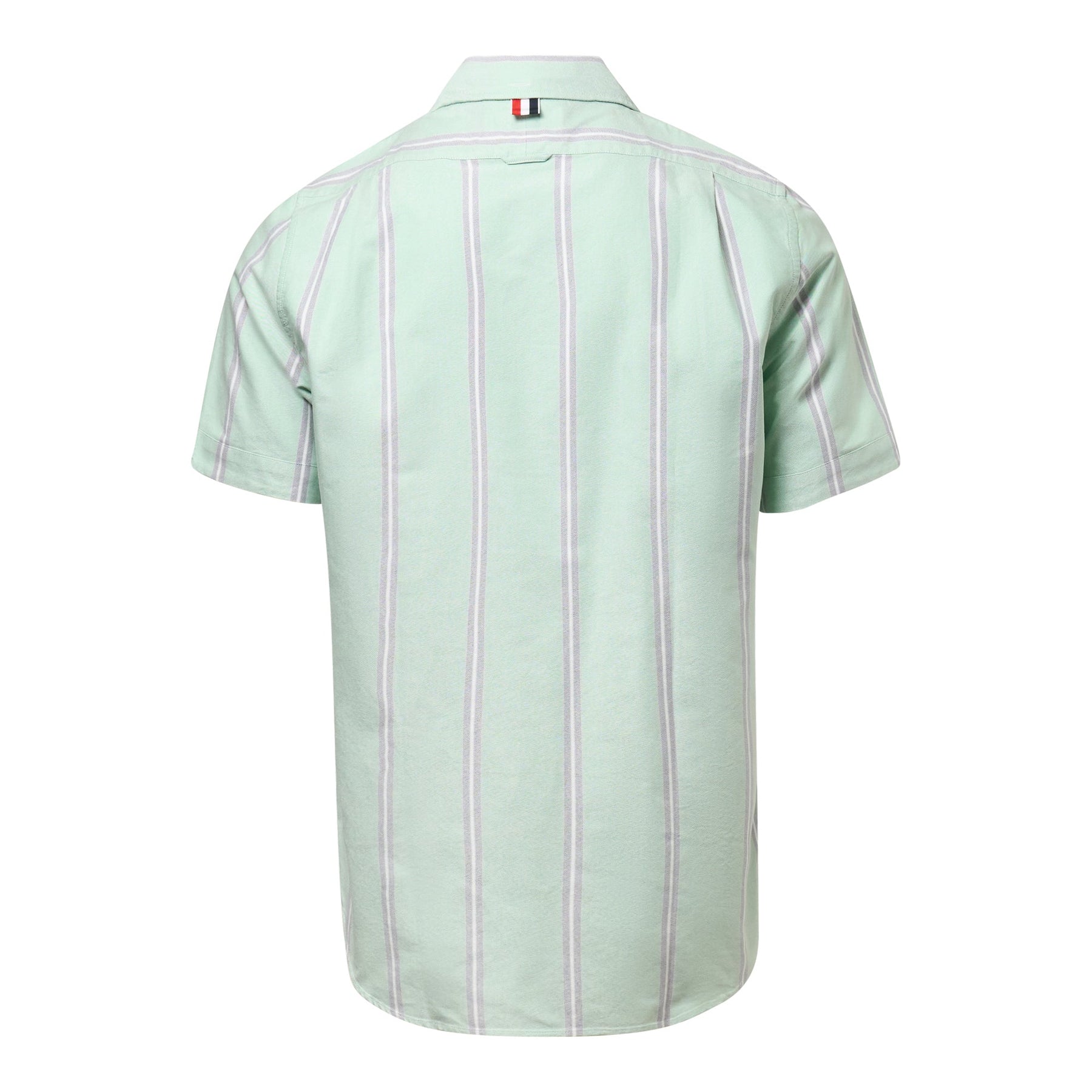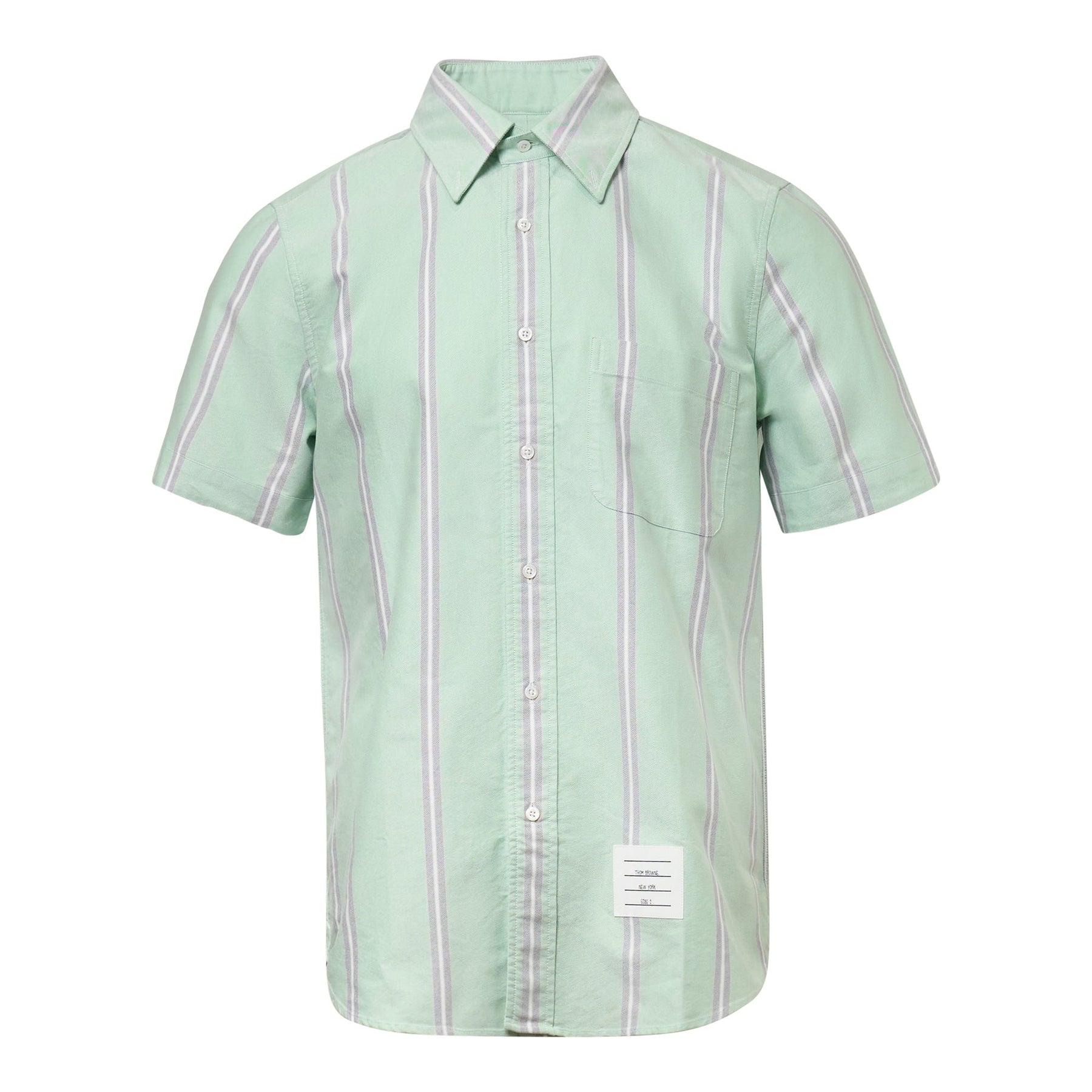 The Thom Browne Straight Fit Button Down Shirt delivers classic American tailoring with contemporary proportions. Crafted from premium cotton in sophisticated mint green with subtle vertical stripes, featuring the brand's signature precise construction. The relaxed fit and clean aesthetic create a versatile piece for refined casual styling.