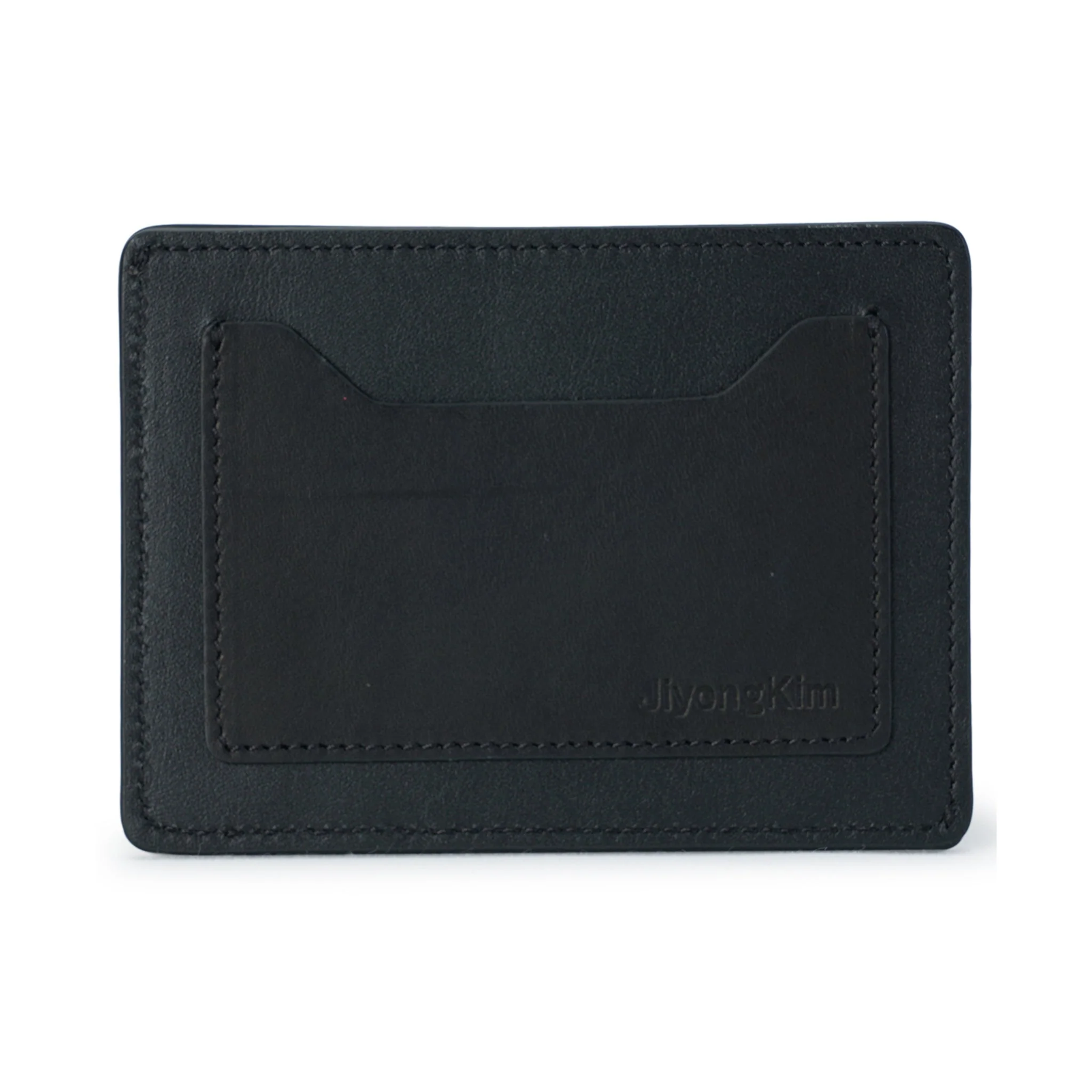 The JiyongKim Sun-Bleached Leather Wallet delivers minimalist functionality with artisanal craftsmanship and weathered aesthetic appeal. Constructed from premium sun-bleached leather in deep charcoal black, featuring hand-stitched edges and a dedicated card compartment with slip-in design. The compact profile and signature aged leather finish create a sophisticated carry essential for the modern minimalist.