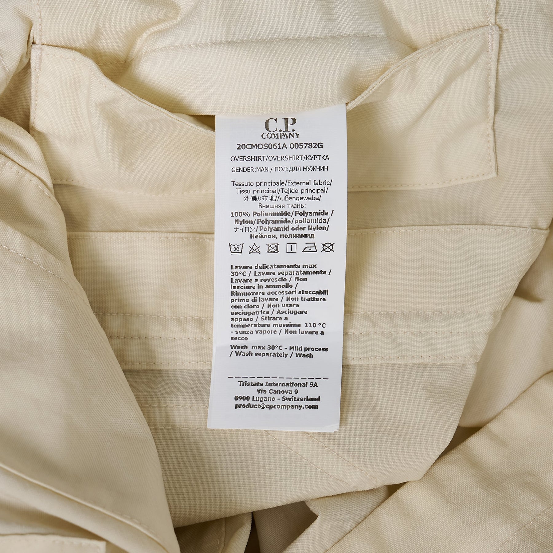 C.P. Company Taylon P Button Lens Overshirt delivers utilitarian style with signature lens detailing and technical construction. Crafted from lightweight Taylon fabric in clean stone beige, featuring the brand's iconic lens pocket on the sleeve. The relaxed overshirt silhouette and premium Italian craftsmanship create a versatile layer for contemporary wardrobes.