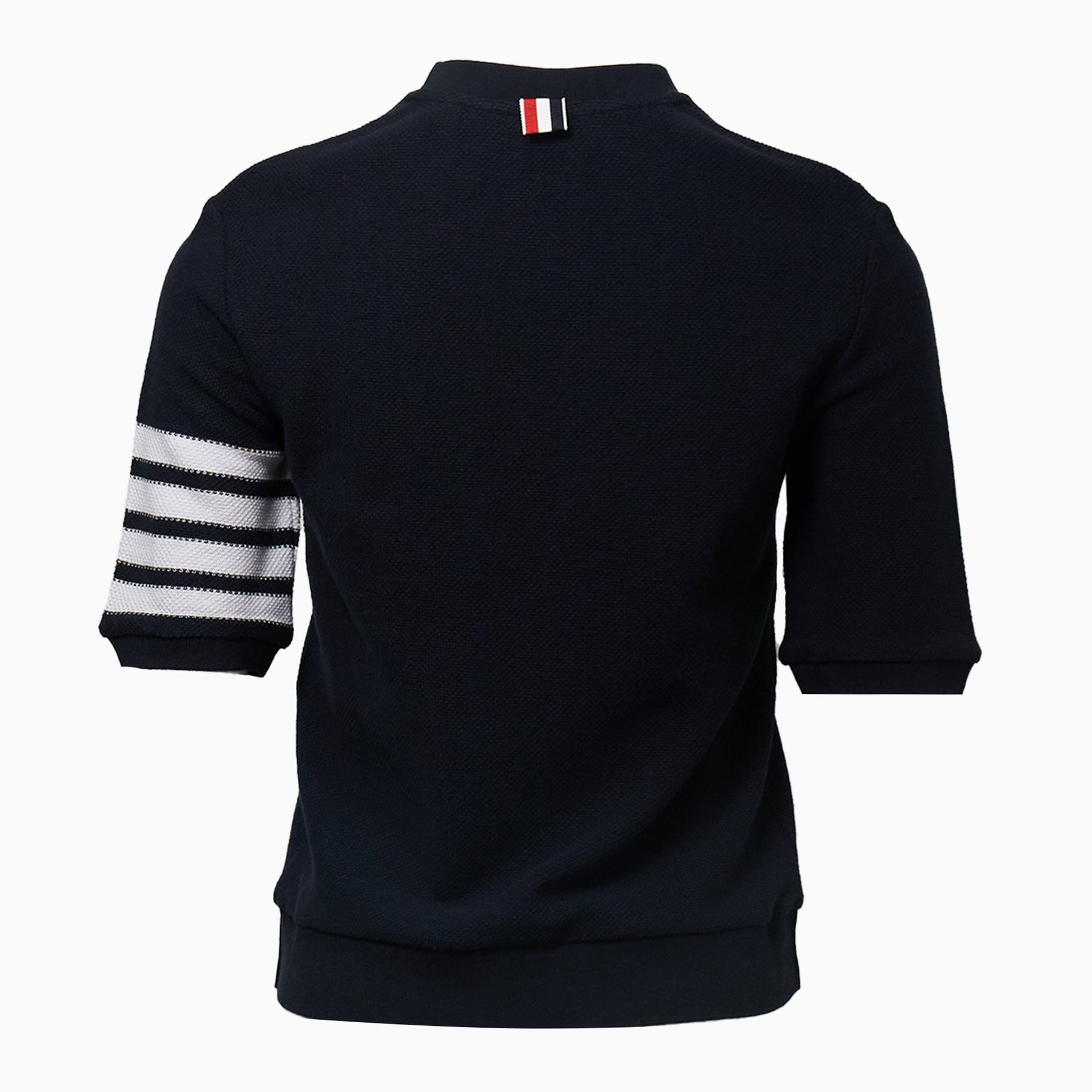 Thom Browne Rib Cuff Tee delivers sophisticated casual wear with premium textured pique construction and architectural tailoring. Crafted from high-quality cotton pique in navy, featuring signature striped sleeve detailing and ribbed cuffs for structured comfort. The brand's iconic four-bar stripe accent and clean minimalist silhouette create a refined wardrobe essential.