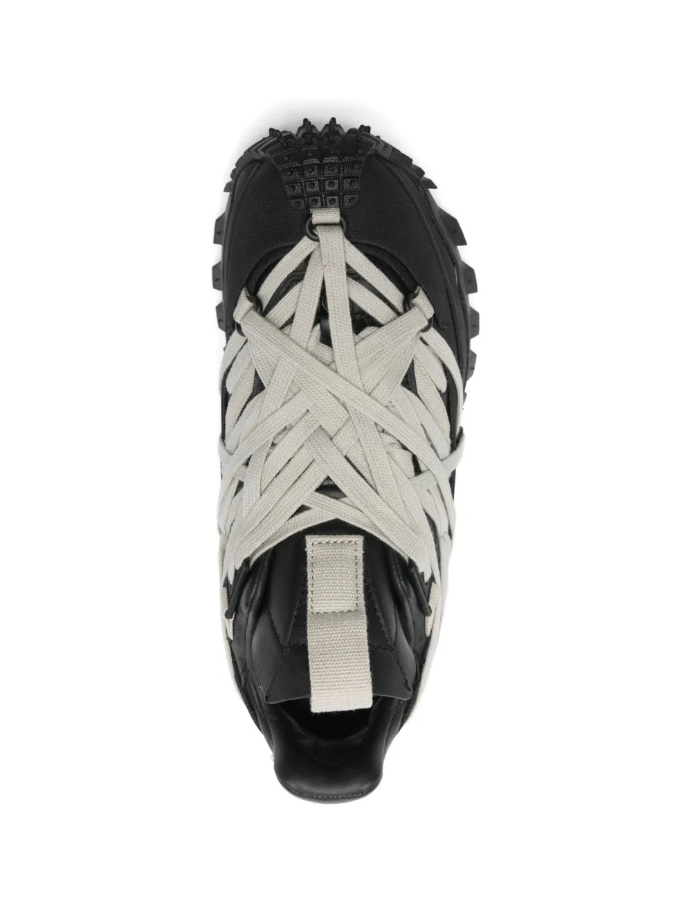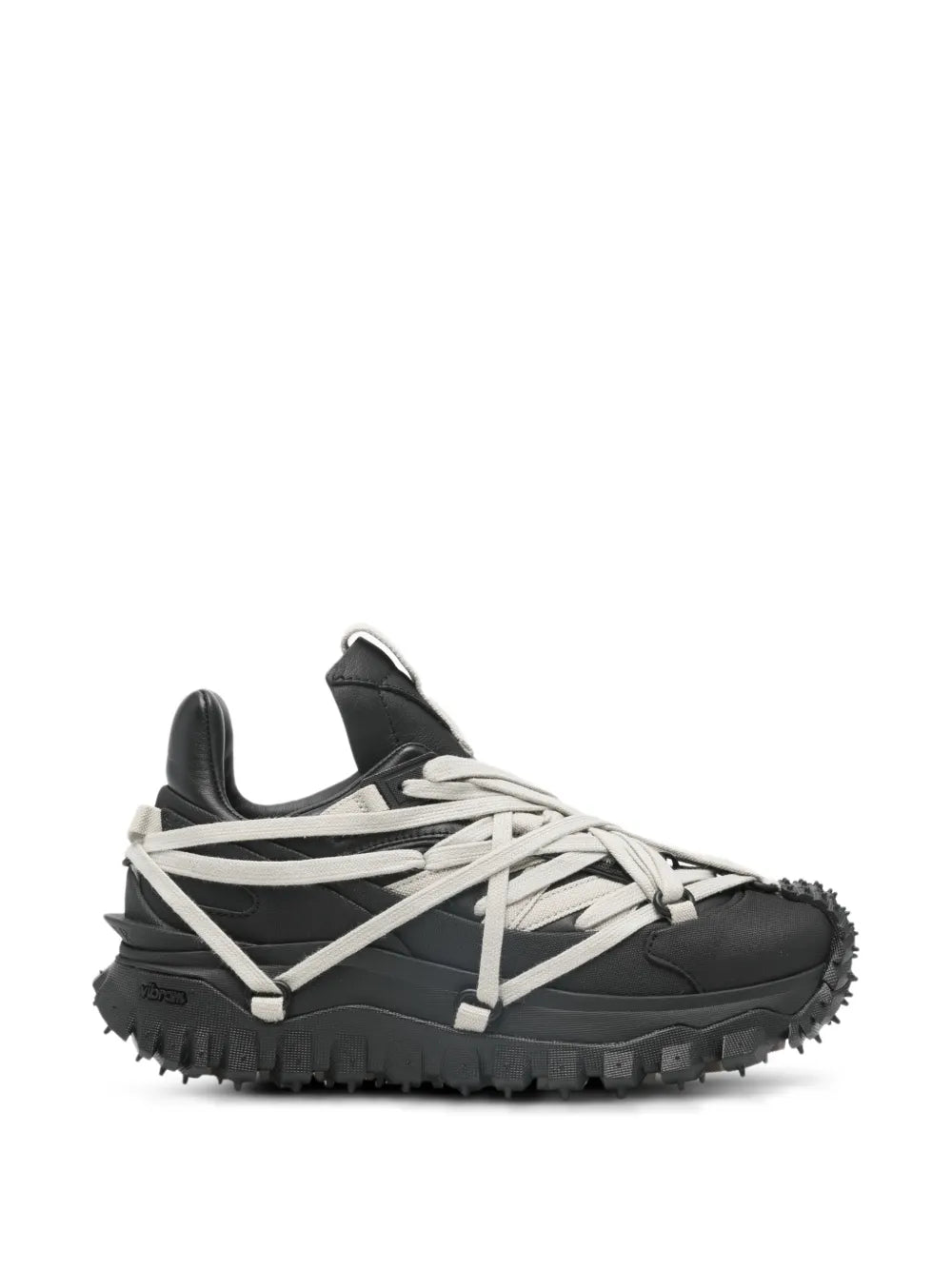 Rick Owens x Moncler Trailgrip Megalace Full Grain delivers avant-garde performance with architectural design and aggressive traction. Crafted from premium full-grain leather with distinctive rope lacing system and chunky studded outsole construction. The collaboration merges Rick Owens' dark aesthetic with Moncler's technical expertise for bold statement footwear.
