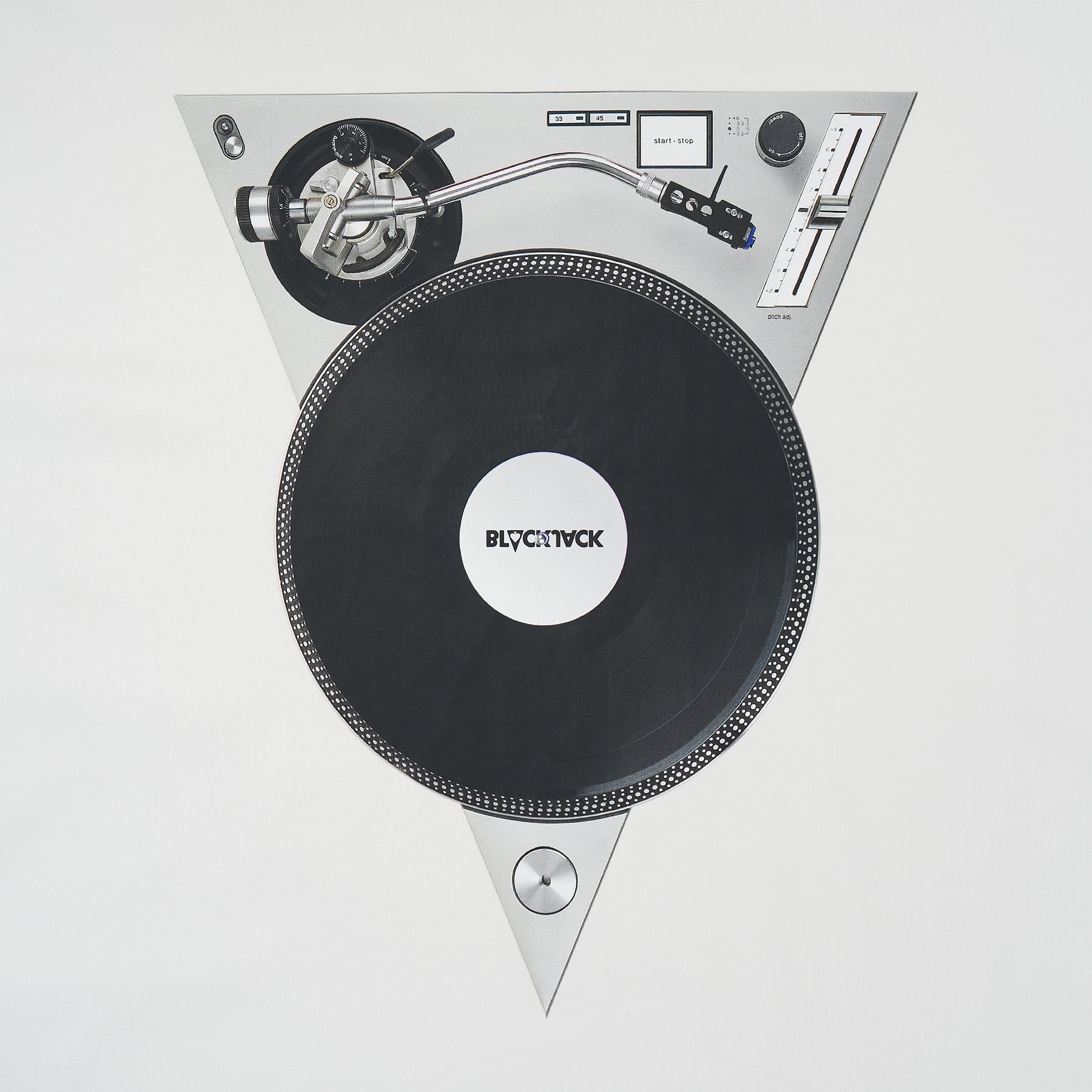 The Blackjack Turntable Tee delivers contemporary streetwear with bold DJ-inspired graphics and premium construction. Crafted from soft cotton in crisp white, featuring an oversized turntable print that showcases music culture aesthetics. The relaxed fit and statement design create an authentic streetwear piece for music enthusiasts.