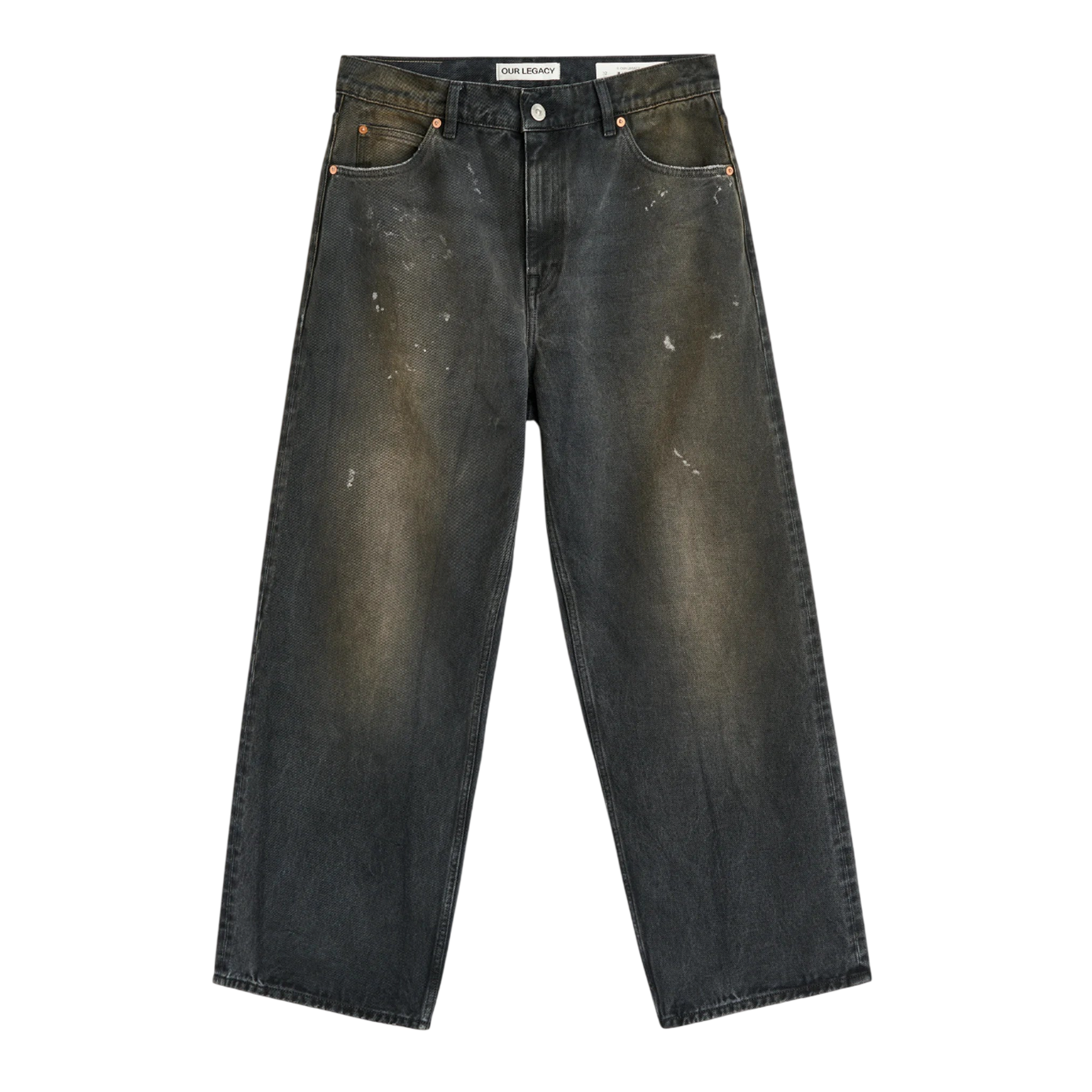 Our Legacy Vast Cut Jeans deliver relaxed contemporary denim with an oversized, comfortable silhouette. Crafted from premium cotton denim in a washed black colorway with subtle distressing and paint splatters for an authentic lived-in aesthetic. The wide-leg construction and vintage-inspired details create a modern take on classic workwear denim.