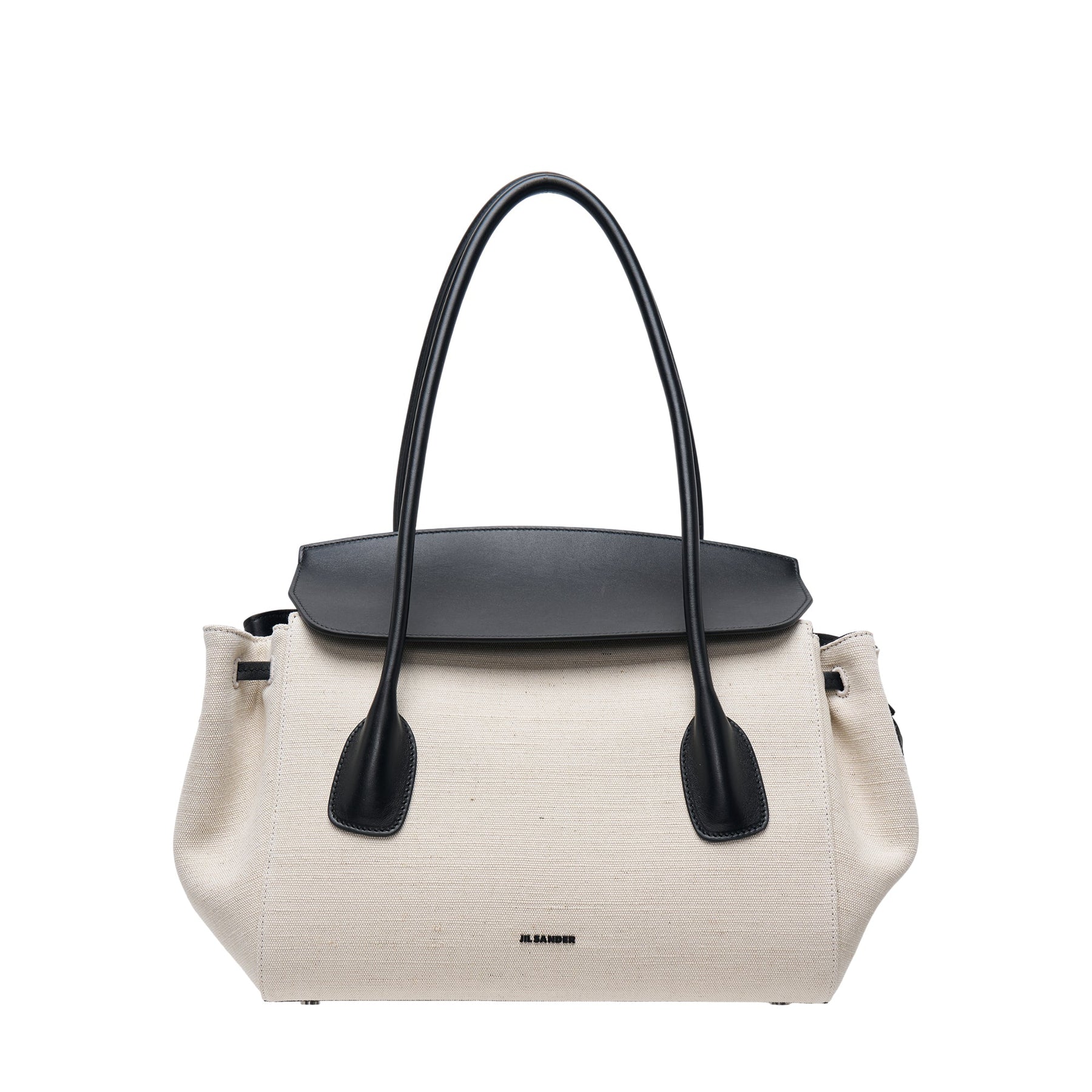 The Jil Sander Voyage Small Natural Canvas Bag delivers minimalist functionality with premium craftsmanship for everyday sophistication. Crafted from structured natural canvas with black leather trim and contrast handles, featuring the brand's signature clean aesthetic. The compact silhouette and dual-material construction create a versatile essential for contemporary wardrobes.